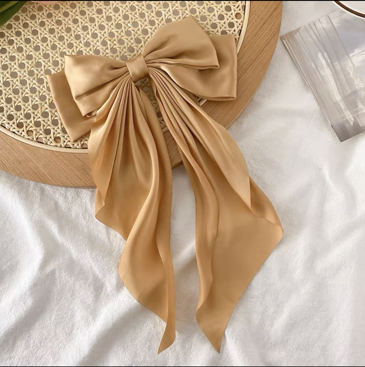 Cross-border satin ribbon bow hair accessories simple temperament female bow hairpin back head spring clip hairpin