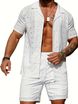 CT 2025 New Casual Men's Hollow Out Solid Color Shirt With Turn-down Collar Short Sleeve Top And Drawstring Shorts