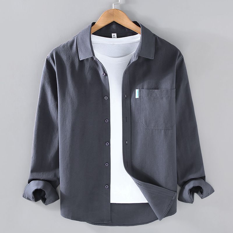 CT 2355 Pure Cotton Long Sleeve Solid Color Simple Workwear Inner Layer Trendy Versatile Loose Quality Shirt Jacket For Men