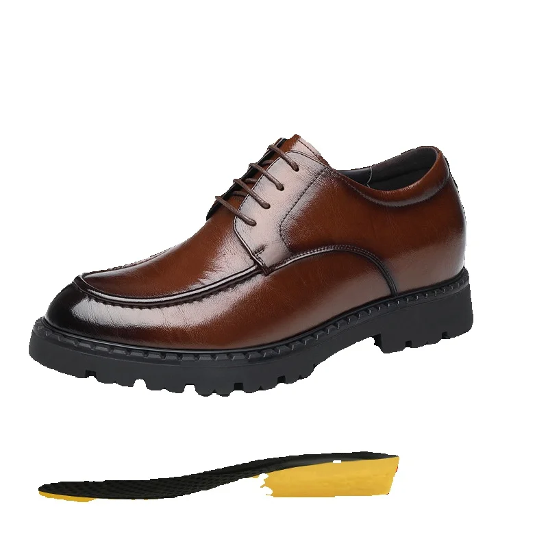 Men's Height Increasing Leather Shoes 8cm Big Toe Genuine Leather Business Derby Shoes Invisible Height Increase Office Casual Shoes