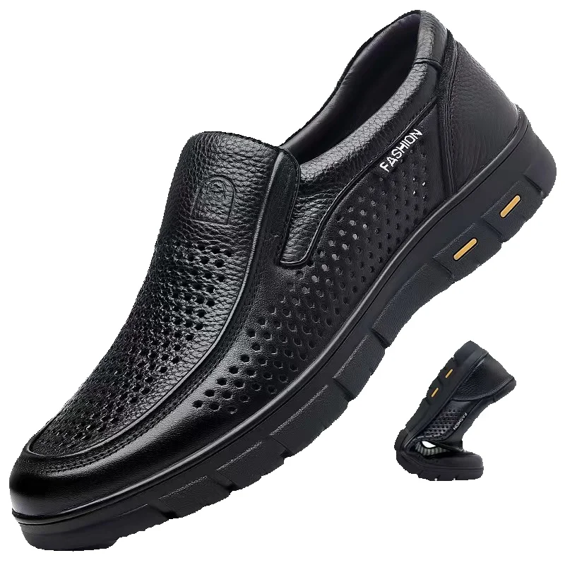 ct Suitable For All Seasons Men's Summer Sandals Hollow Breathable Shoes Business Casual Genuine Leather Cowhide Hole Dad Non-Slip