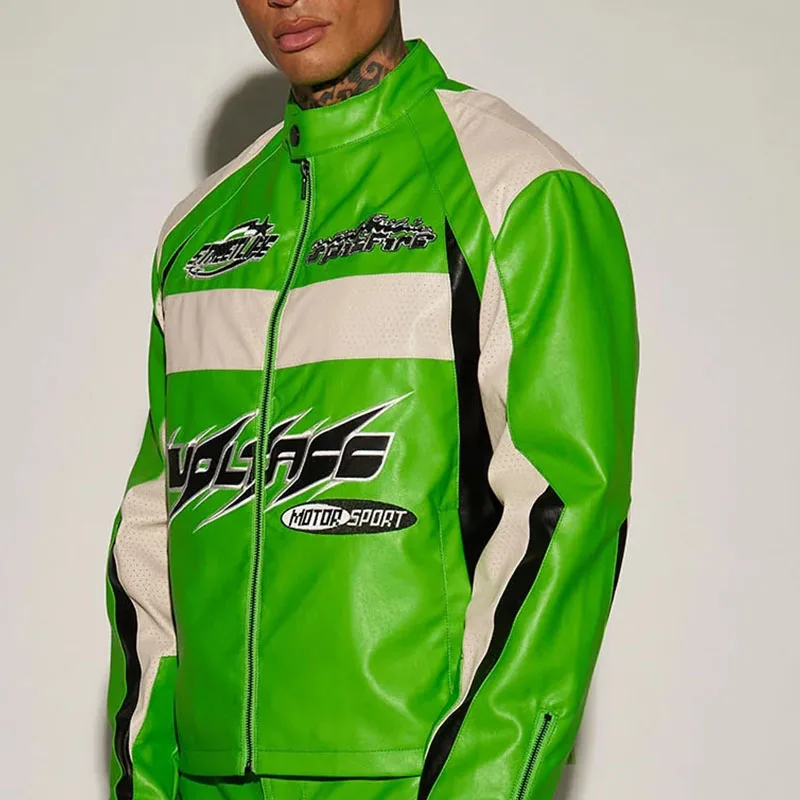 Custom design retro classic motorcycle oem patch genuine leather racing jacket for men
