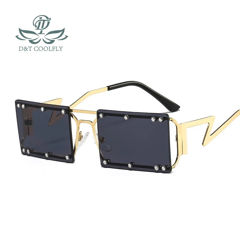 D&T New Rectangle Sunglasses Women Men Rivet Decoration Square Metal Frame PC Colorful Lens Brand Designer Trend UV400