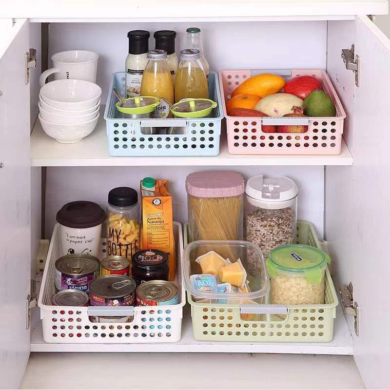 【Fast Refund】Desktop Thickened Rectangular Plastic Basket Storage Kitchen Bathroom Snacks Miscellaneous Storage Basket A4 Toy Organizer Basket
