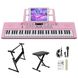 [Do Not Sell on Amazon]GEP-110 61 Key Keyboard with Piano Stand, Piano Bench, Built In Speakers, Headphone, Microphone, Music Rest, LED Screen, 3 Teac