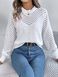Elegant Hollow-Out Lantern Sleeve Sweater - Cozy Fall & Winter Pullover For Women, Soft Acrylic Knit, Casual Round Neck Top (Beige, White, Orange)