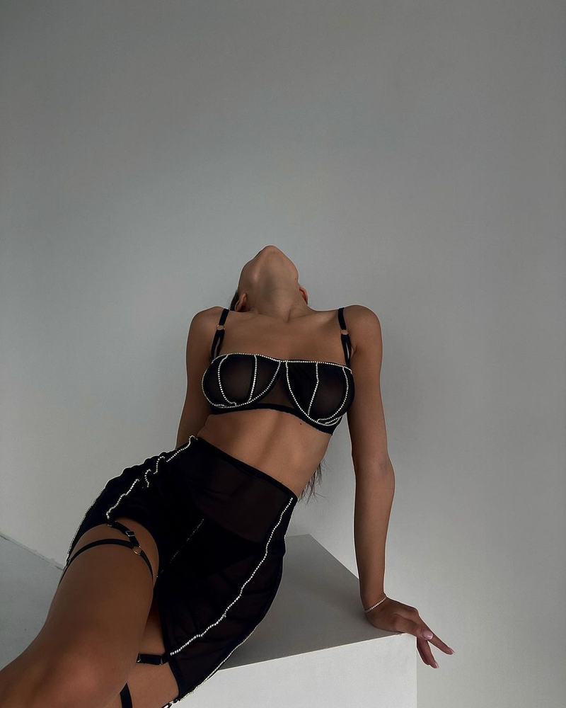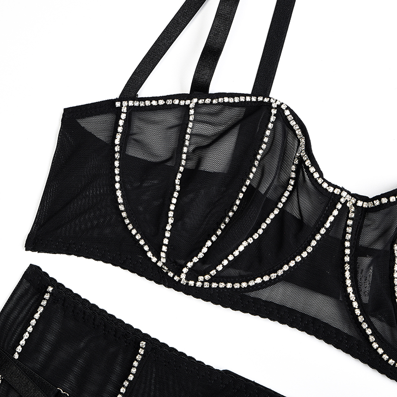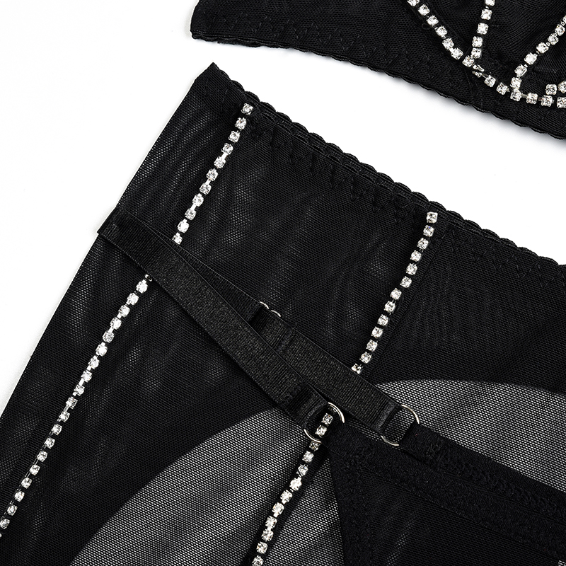 Ellolace Rhinestone Lingerie Fancy Underwear Bra K Push Up Erotic Brief Sets Wh Showing Buttocks Skirt Sensual