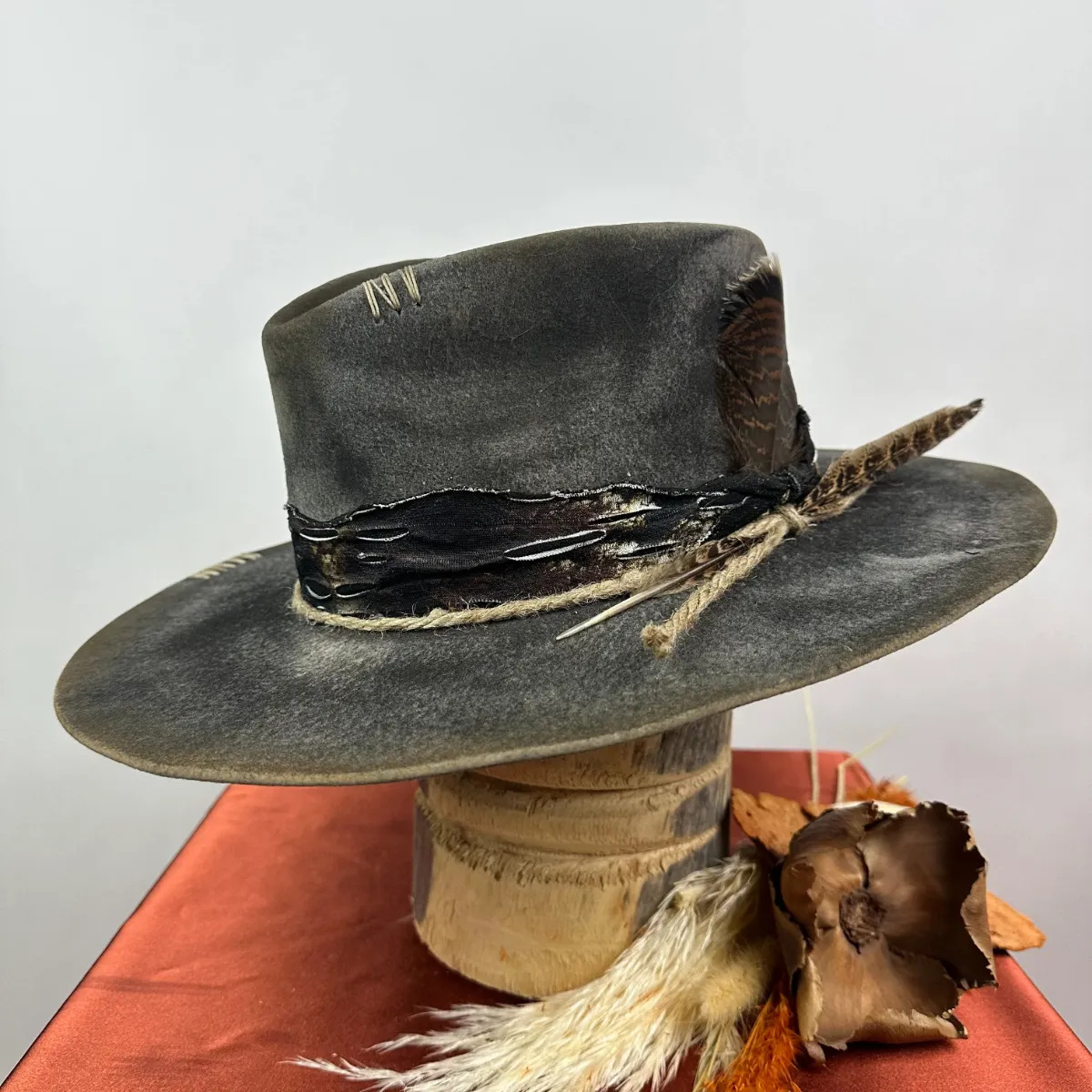 Ethnic style hats with worn-out woven straps, pure wool felt hats, outdoor fashionable wool hats
