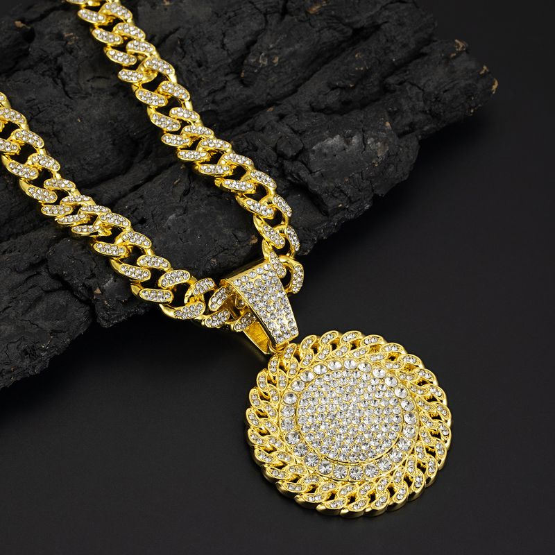 European And American Diamond Studded Cuban Chain Round Plate Thick Pendant, Hip-hop Popular Accessory Necklace