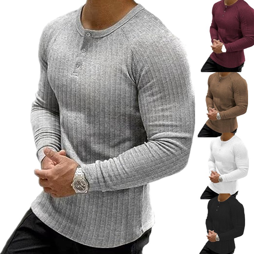 European Men's Sports Tees Slim Muscle Short Sleeve T-Shirt Fitness Elastic Thread Tight Solid Color Henry Shirt