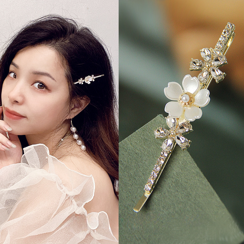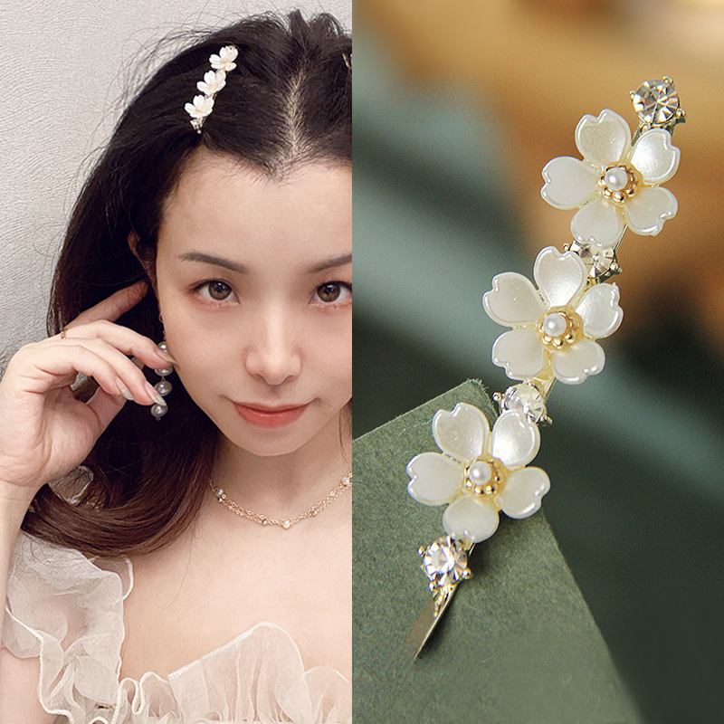 Fairy Gentle Flower Hairpin Fairy Pearl Hairpin Exquisite Bangs Clip One-word Clip Broken Hair Side Clip Hair Accessories
