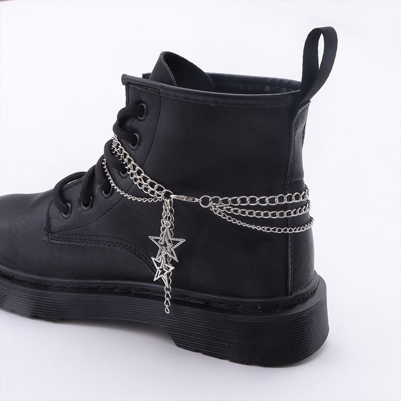 Fashionable And Trendy Multi-layer Hollow Irregular Pentagram Pendant Shoe Chain Cool Martin Boots With Detachable