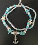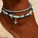 Fashionable minimalist turquoise, starfish, and turtle foot decorations with beach style double layered ankle chains