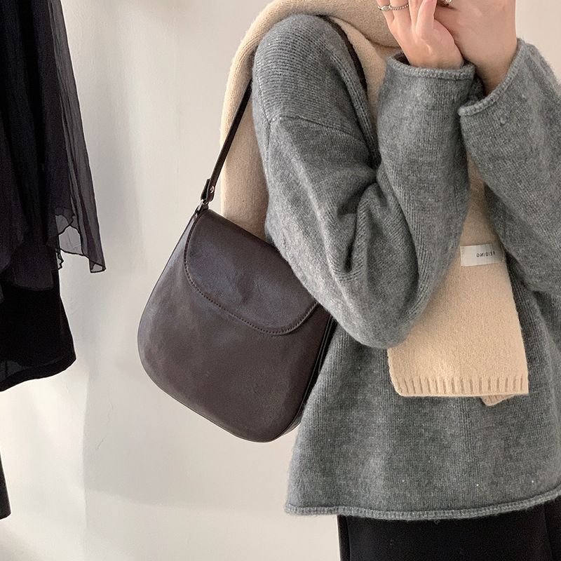 Flip leather 2024 new minimalist style vegetable tanned cowhide single shoulder underarm saddle bag with niche design