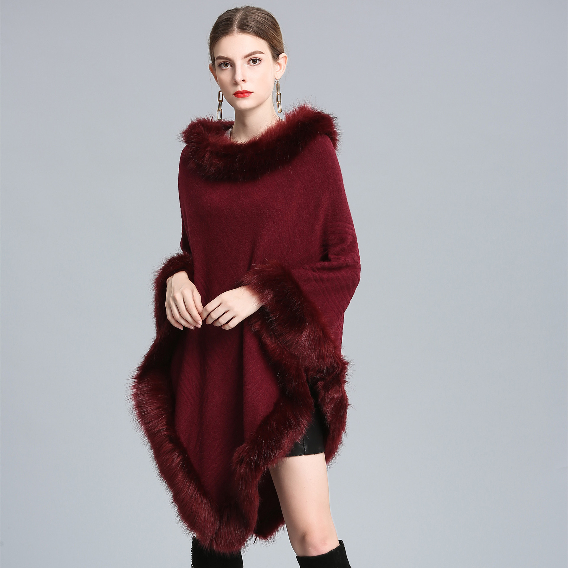 Fur collar cape cape round neck pullover sweater large size loose coat