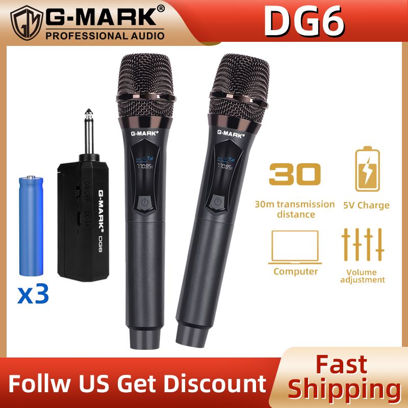 G-MARK DG6 Wireless Microphone 2 Channels Professional Handheld Mic Micphone For Party Karaoke Professional Church Show Meeting