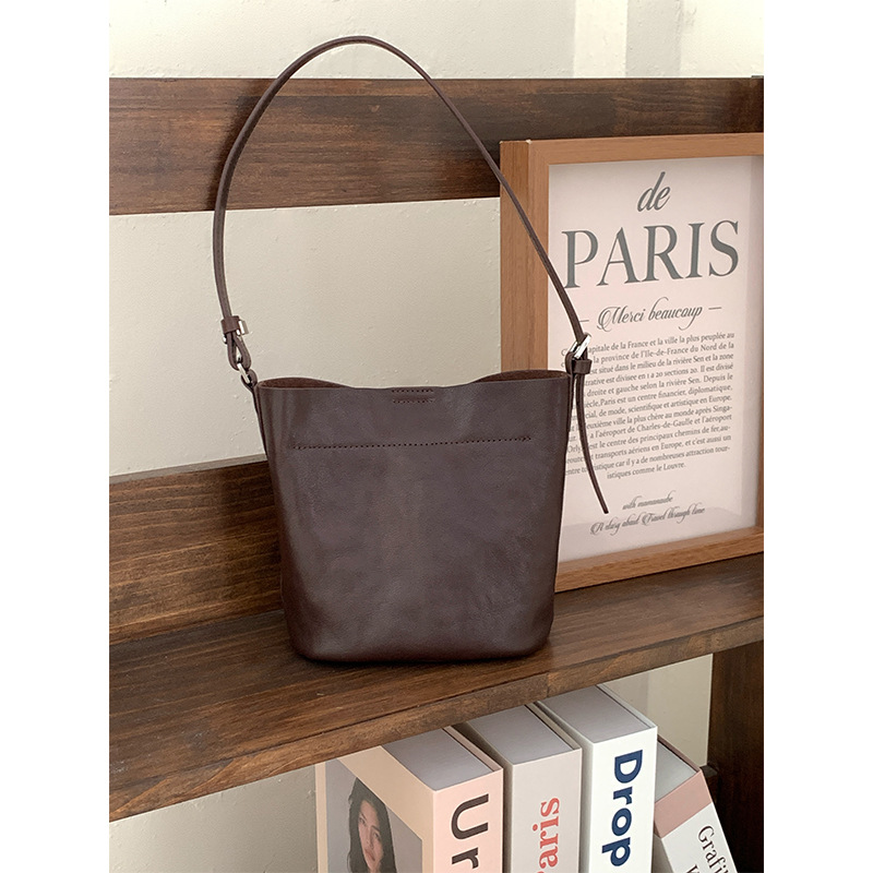 【 Genuine leather women's bag 】 Head layer cowhide bucket bag minimalist style single shoulder armpit bag women's crossbody bag small bag