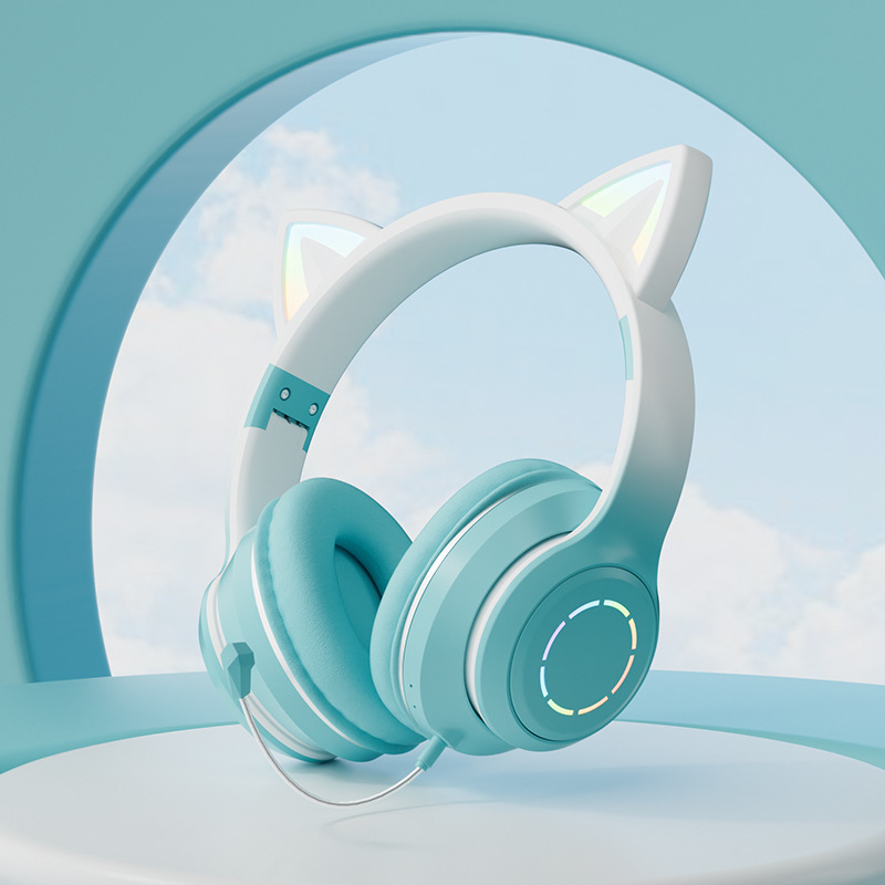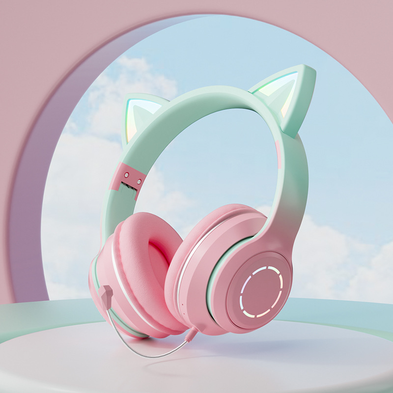 Glow Bluetooth Headworn Gradient Cat's ears (Steamed cat-ear shaped bread) High Beauty Online Class Call Game Headset