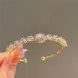 Gold - Toned Open Cuff Bangle With Large Central Crystal & Zircon Accents, Shiny Elegant Jewelry For Women's Party Or