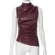 Gtpdpllt PU Leather Tank Top High Fashion Asymmetrical Ruched Sleeveless Blouse Winter Sexy T Shirt For Women Y2K Clothes