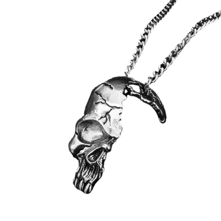 Half face skull necklace men, metal gothic style for women, street punk rock, niche personality, cool trend