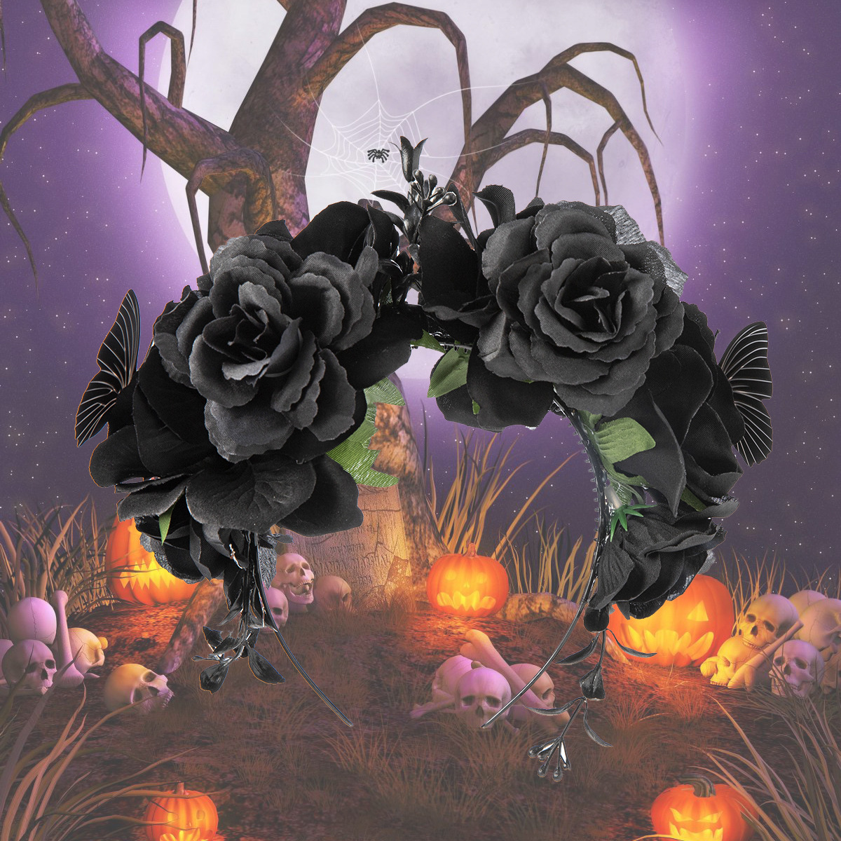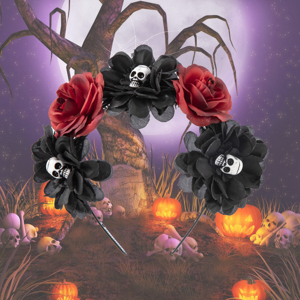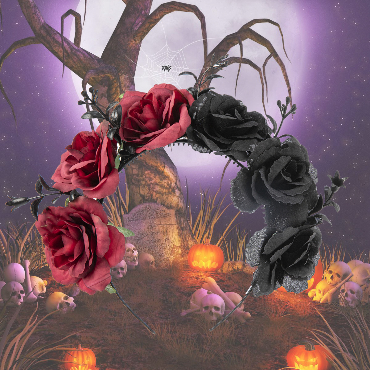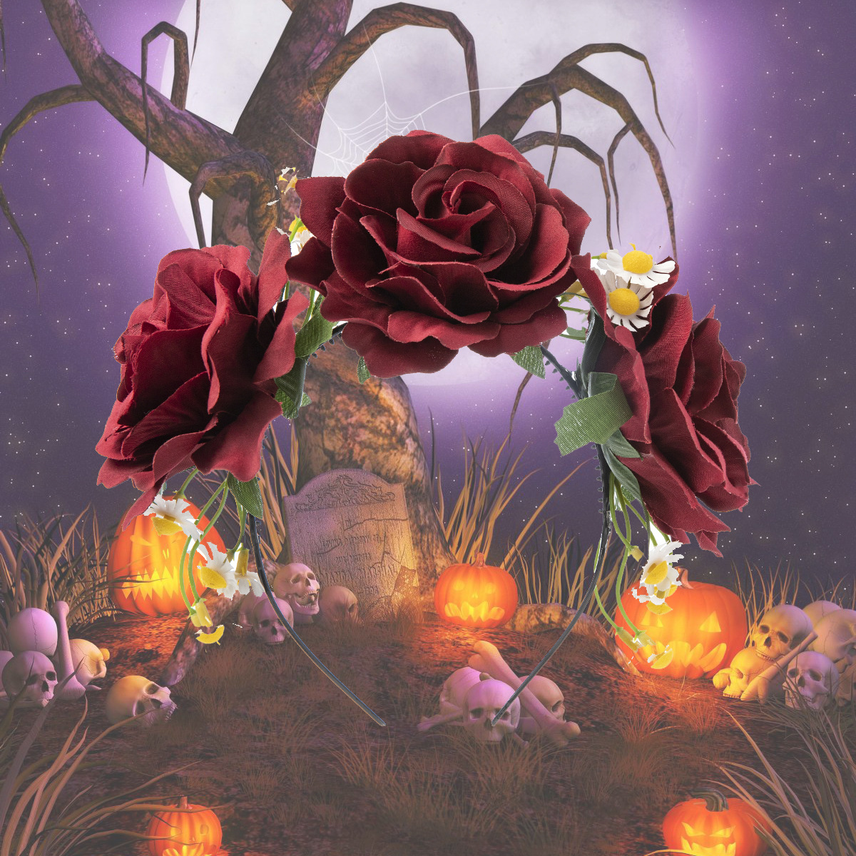 Halloween simulation rose headband skull ghost hand niche personality headband Gothic girl dark hair accessories