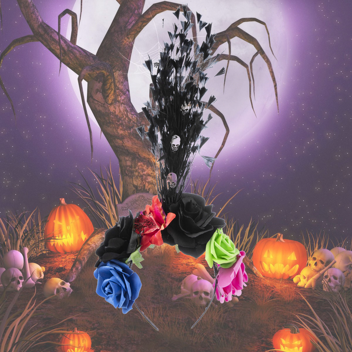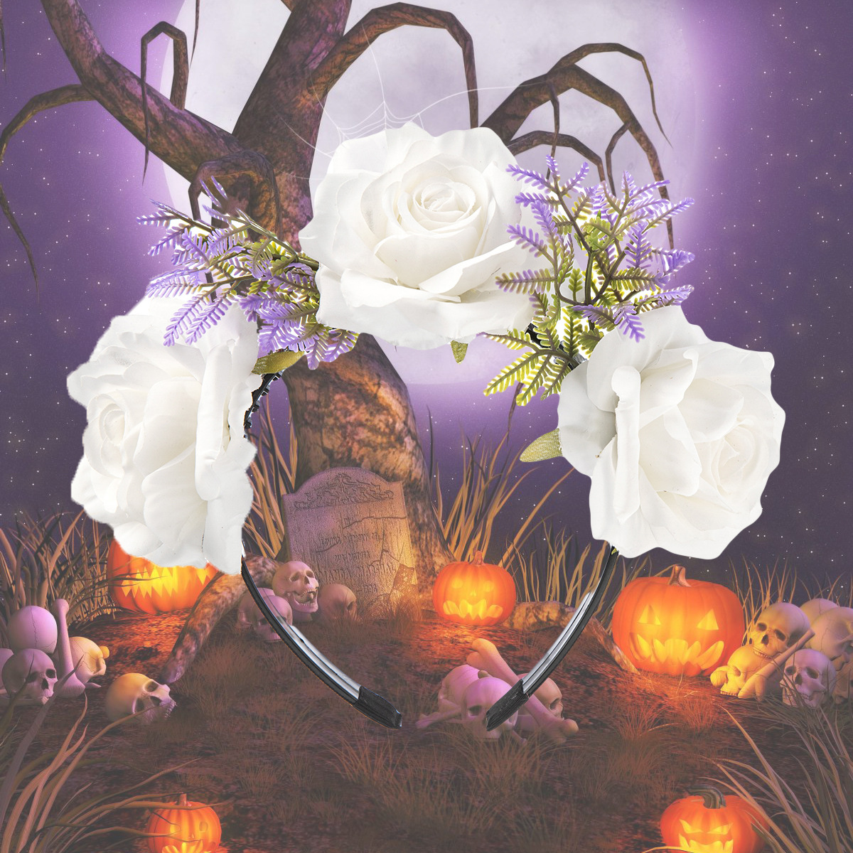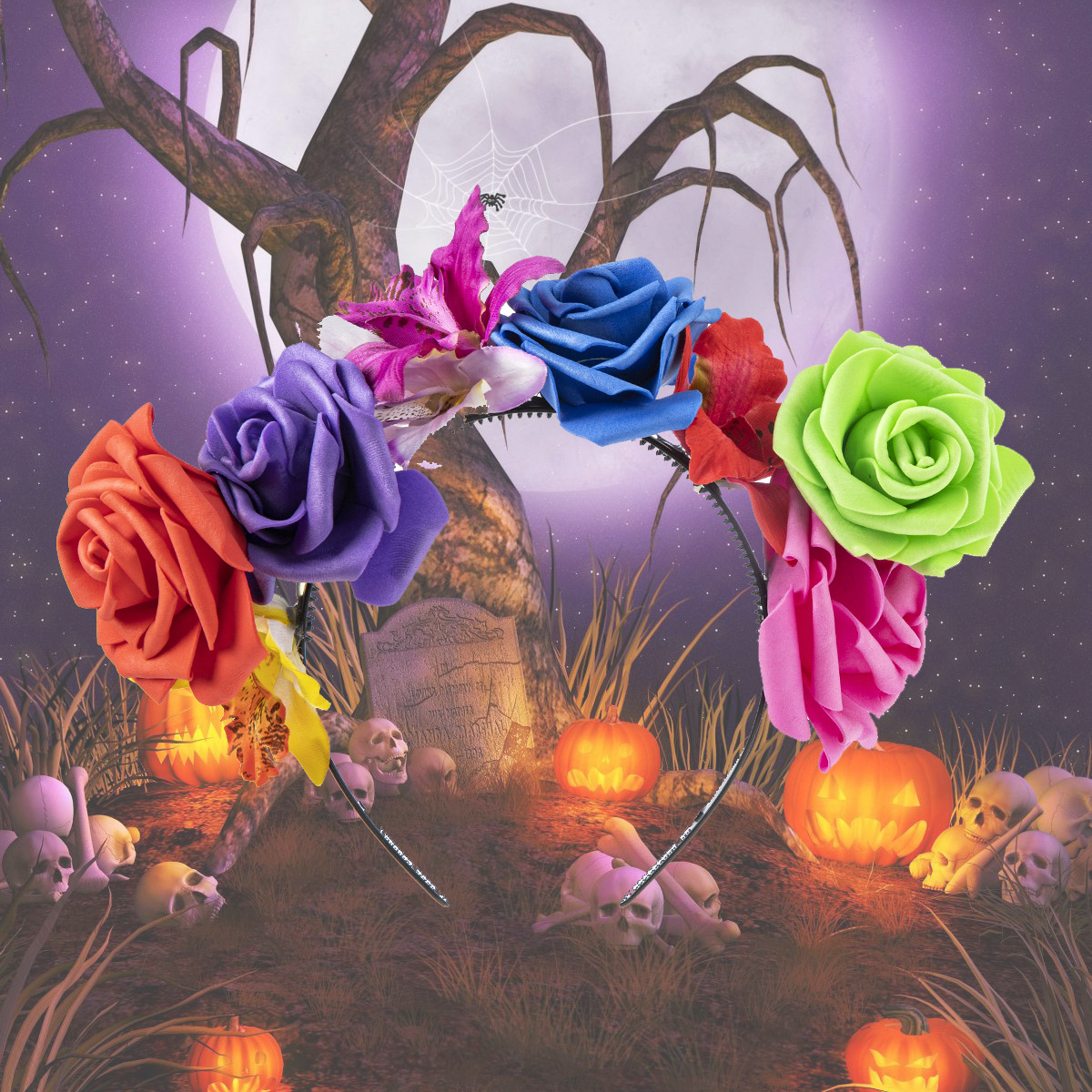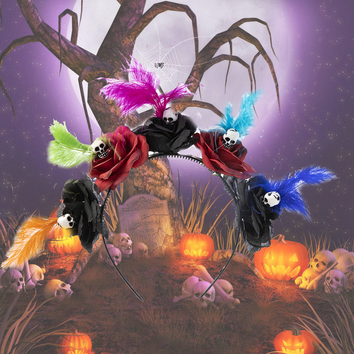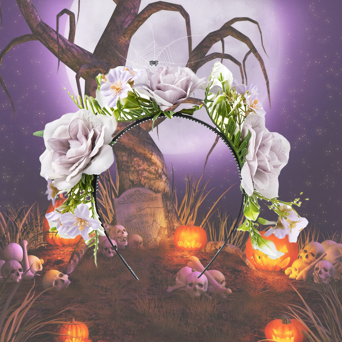 Halloween simulation rose headband skull ghost hand niche personality headband Gothic girl dark hair accessories