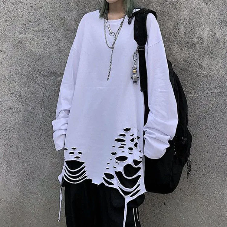 Haruku Women Alt Emo Tshirts Oversized Long Sleeve E Girl Pullovers Hip Hop Punk Streetwear Tees Black Loose T-Shirt Clothes