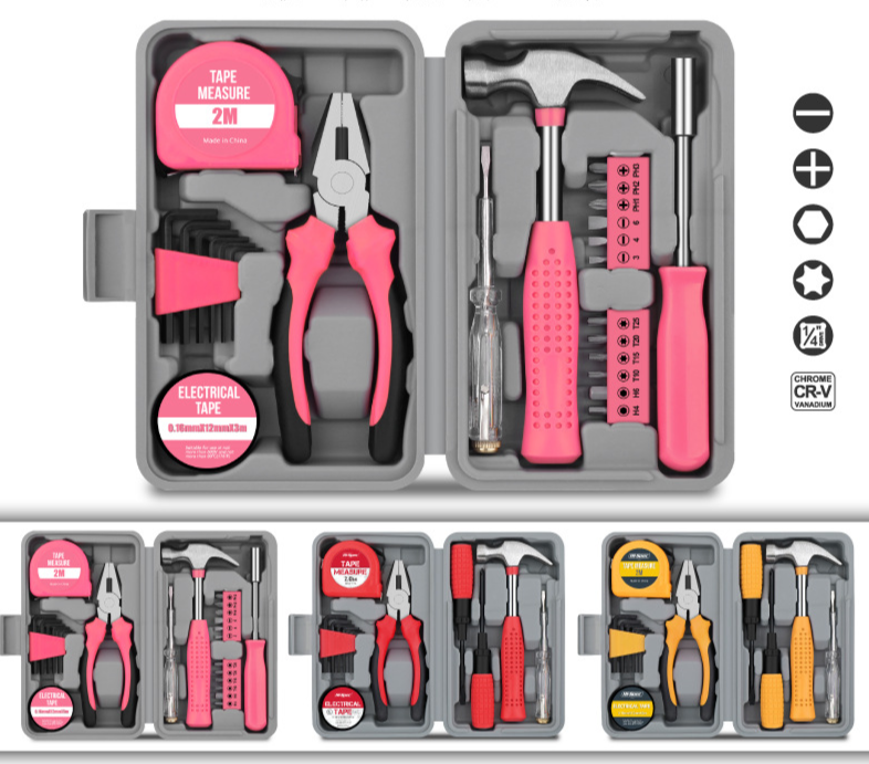 Hi-Spec Household Tool Box Set With Hex Key, Screwdriver, Pliers For Daily Home Maintenance