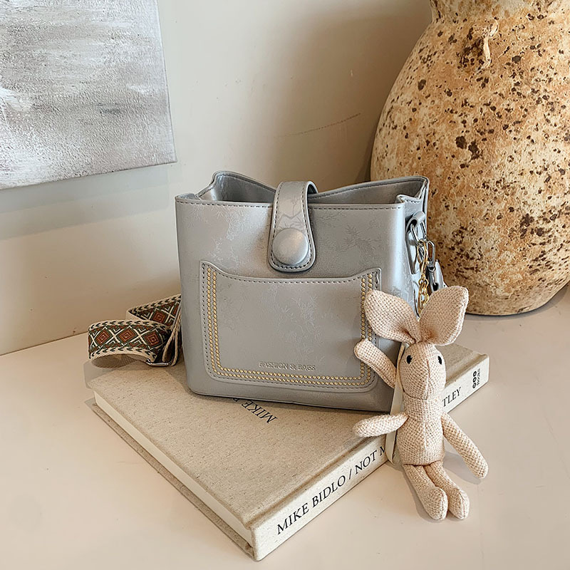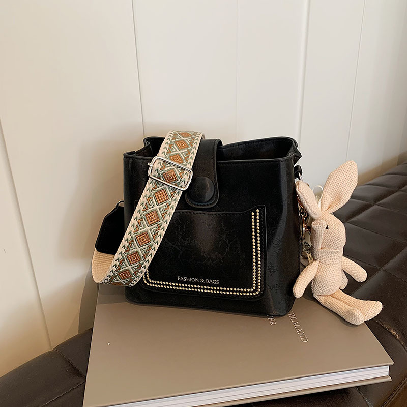 High end Korean version versatile hand-held bucket small for women's summer 2024 new wide shoulder strap crossbody bag