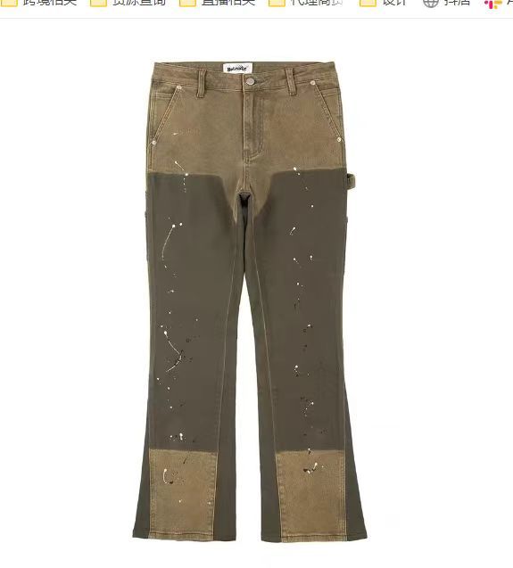 High street water ins same washed Vibe style loose splicing splashed ink zipper jeans logging work pants