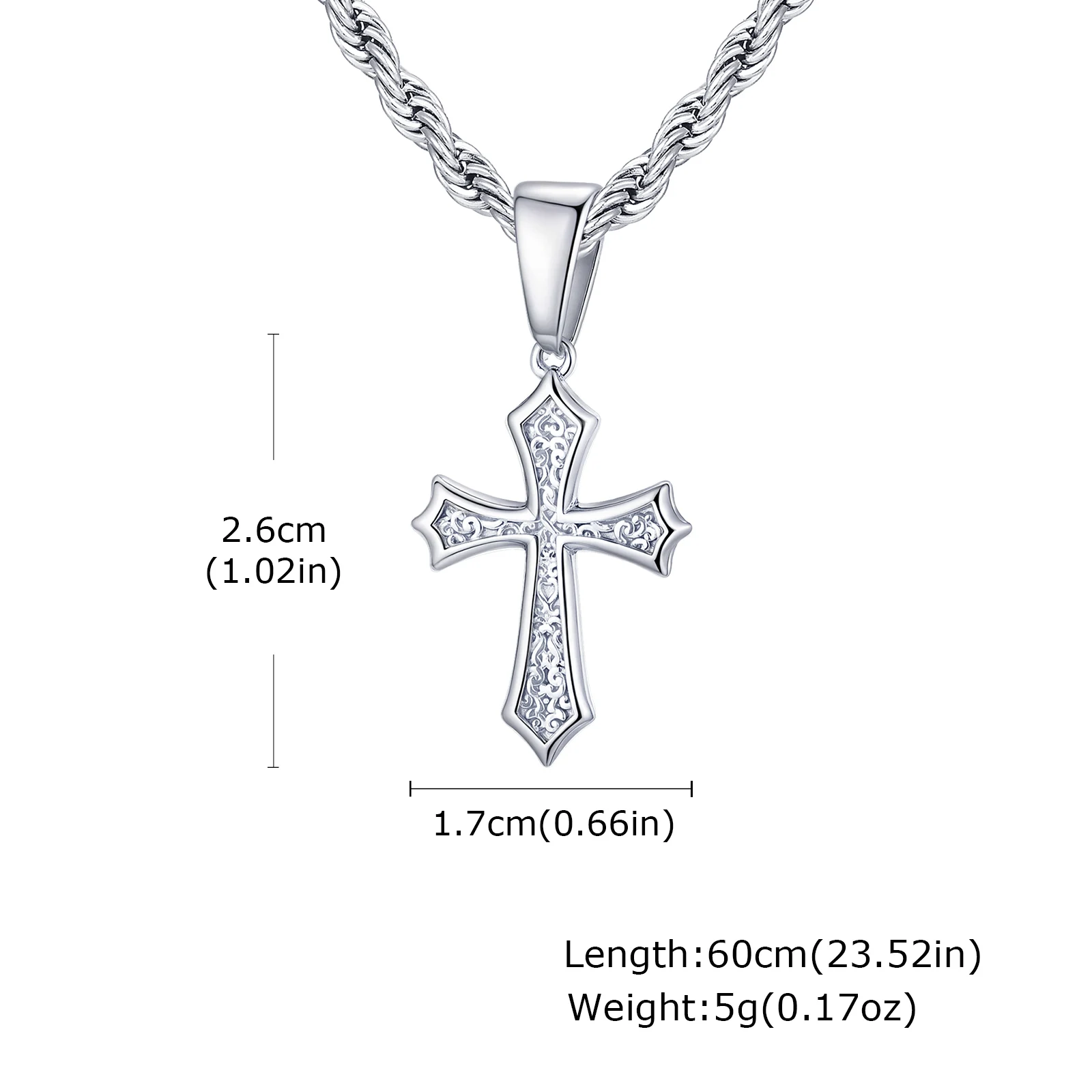 Hip Hop Cross Necklace For Men Women,50/55/60cm Stainless Steel Chic Cross Pendant,Christian Classic Jewelry Gifts