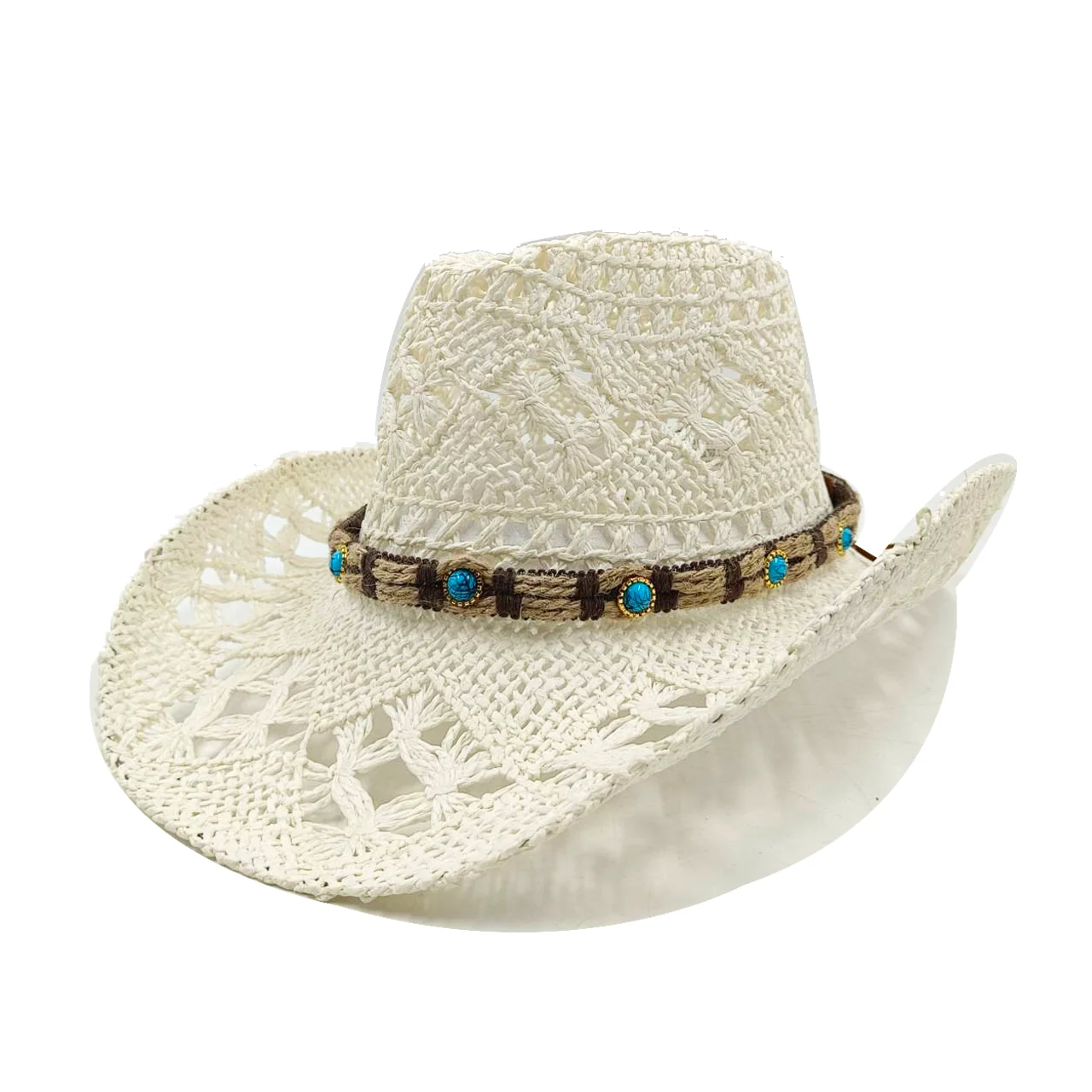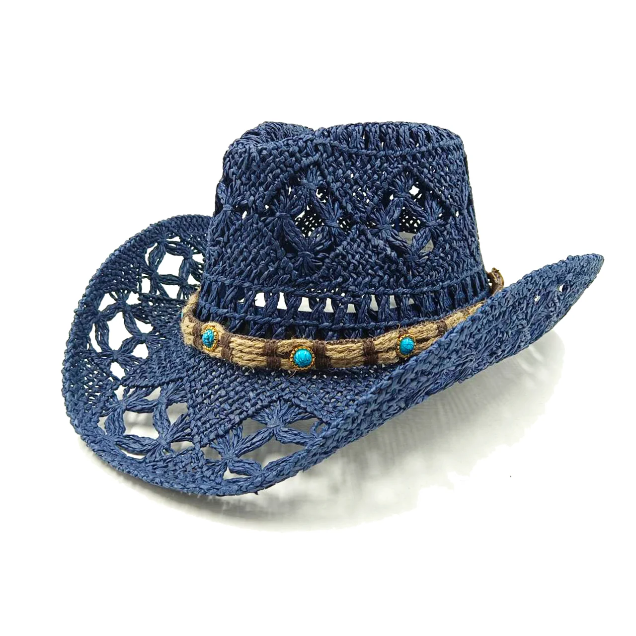 Hot Sale 2024 New Spring and Summer Hand-knitted Outdoor Travel Beach Unisex Western Cowboy Straw Hat