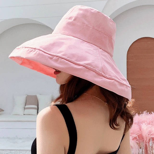 Hot Sale 2024 Women's Bucket hat Panamanian Women Four Seasons Big Brim Double-Sided Fisherman Hat Sun Visor C