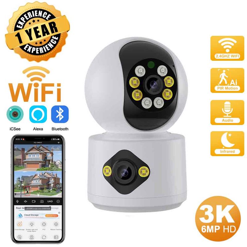 ICSEE 6MP WiFi IP Dual Lens Baby Monitor Color Night Vision Human Auto Tracking Video Smart Home Surveillance Camera