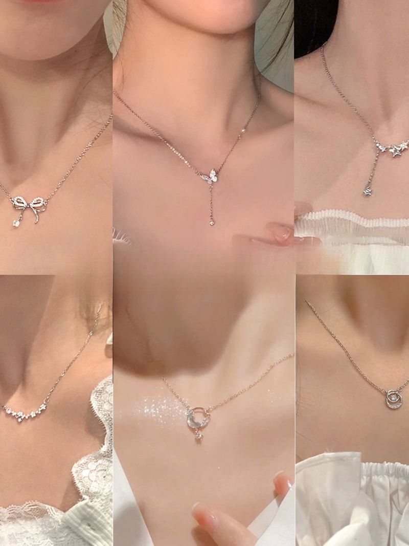 Inlaid Diamond Bow Necklace for Women, High-End Elegant Versatile Pendant Collarbone Chain, Light Luxury Niche Design Stone Choker