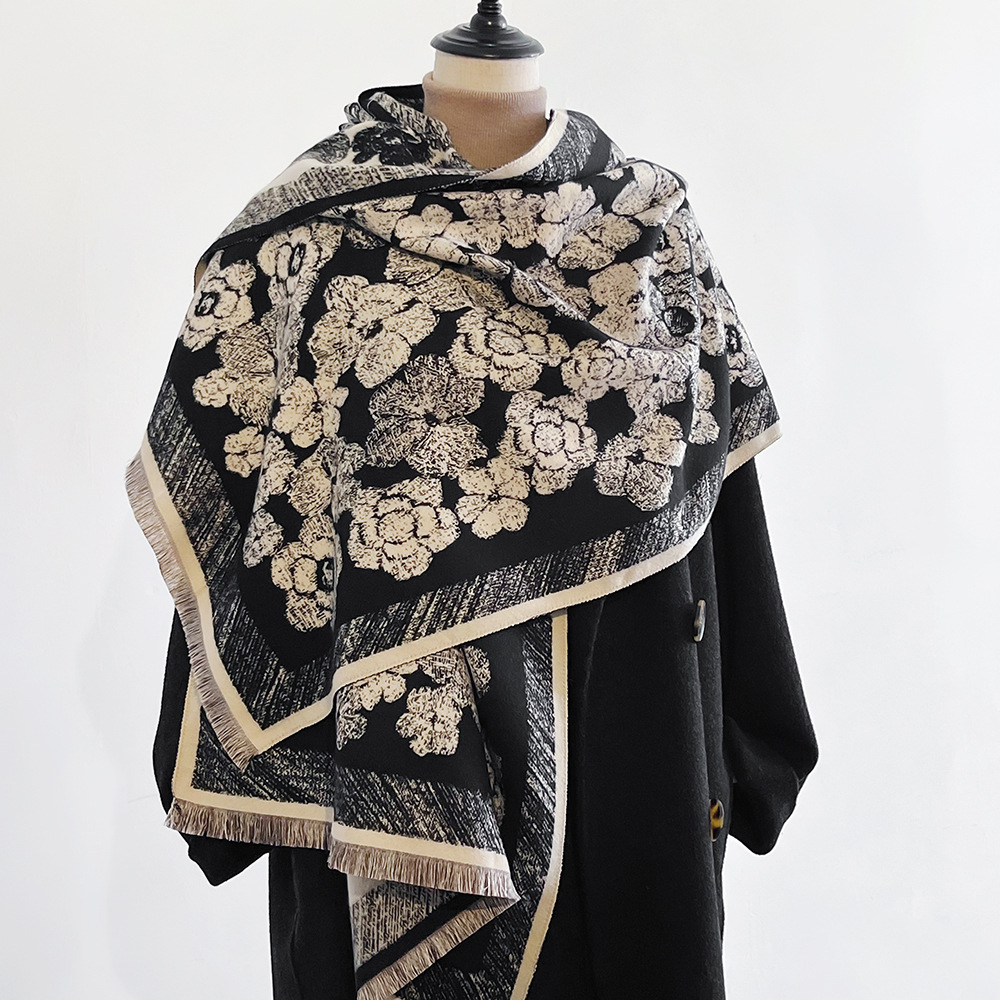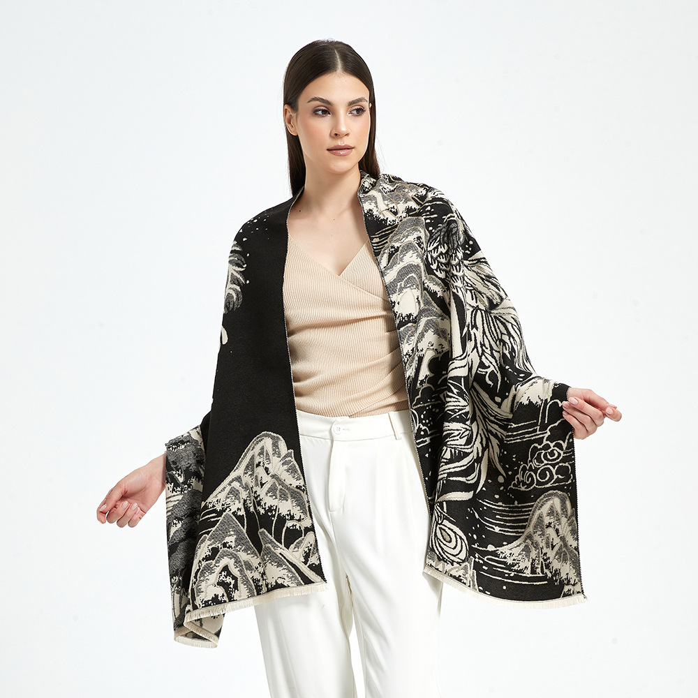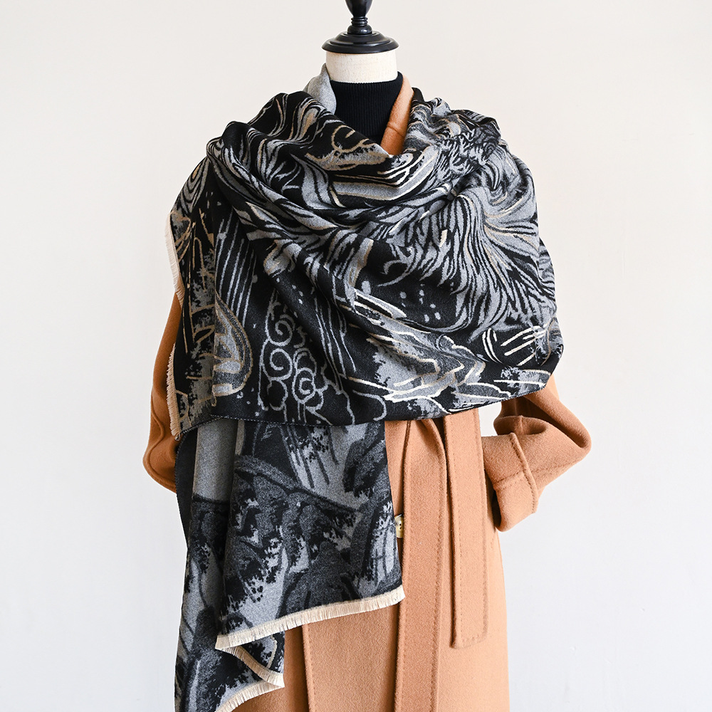 Jacquard Landscape Painting Cashmere Scarf For Women's Office Air-conditioned Room Thick And Warm Long Trendy Scarf