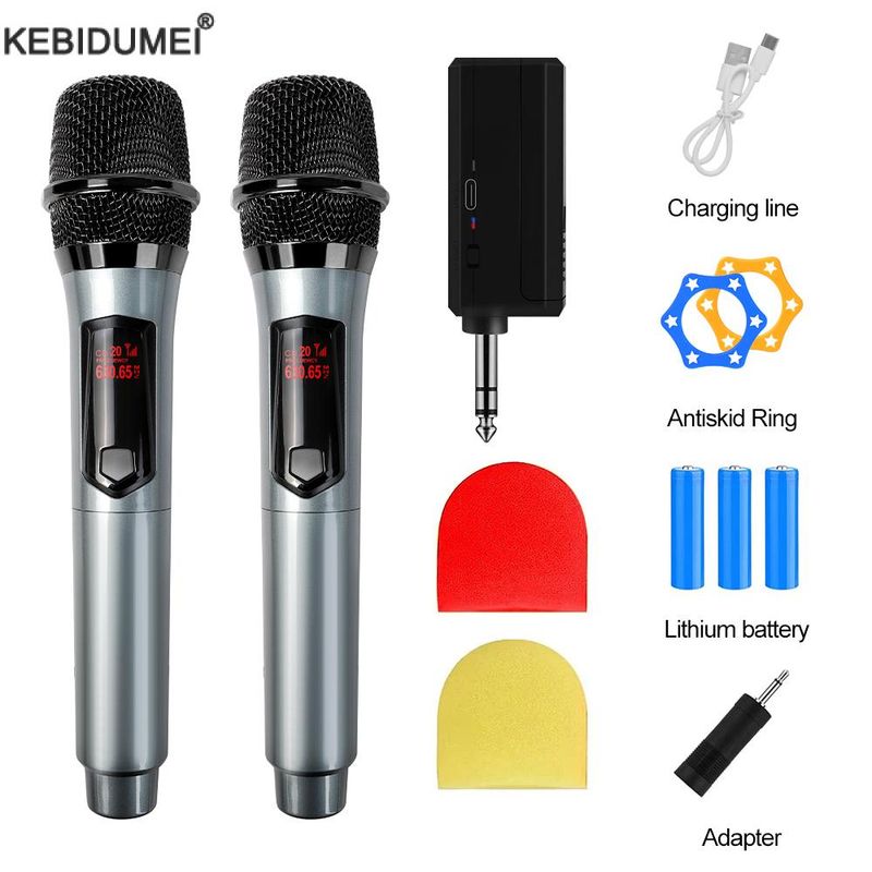 Wireless Karaoke Microphone System: UHF wireless microphone produces high quality clear sound without distortion. The professional dynamic microphone set comes with 3 built-in rechargeable and replaceable batteries.