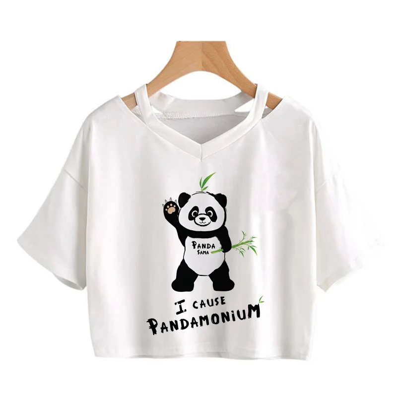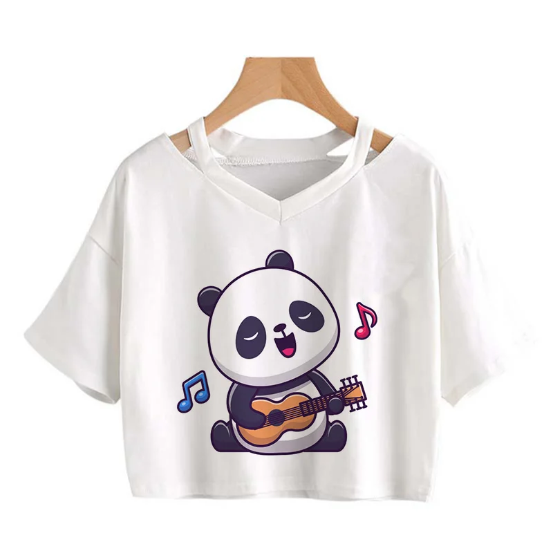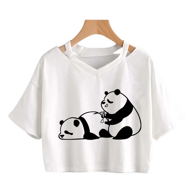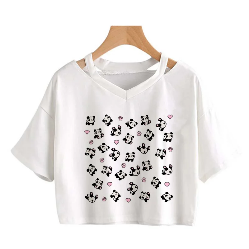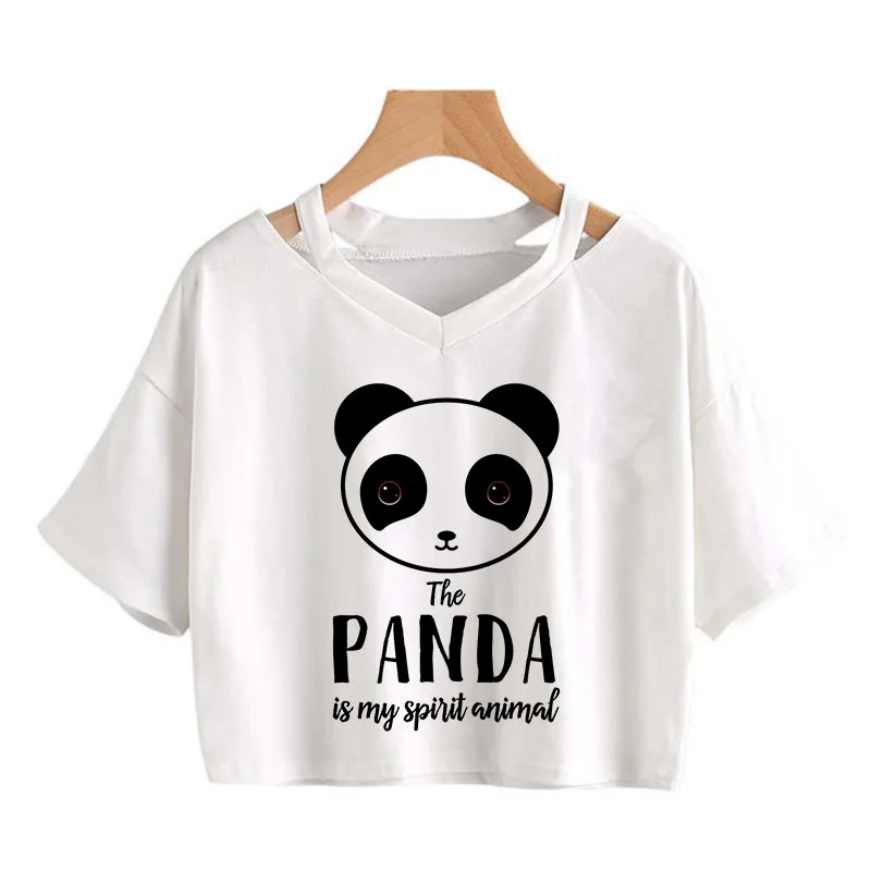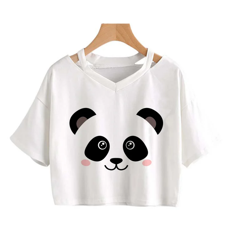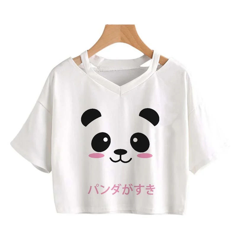 Kawaii Crop Tops for Girls Cute Korean Style T-shirt Women Panda Milk Tea Graphic T Shirt Cartoon Haruku Y2k Tee Tshirt Female