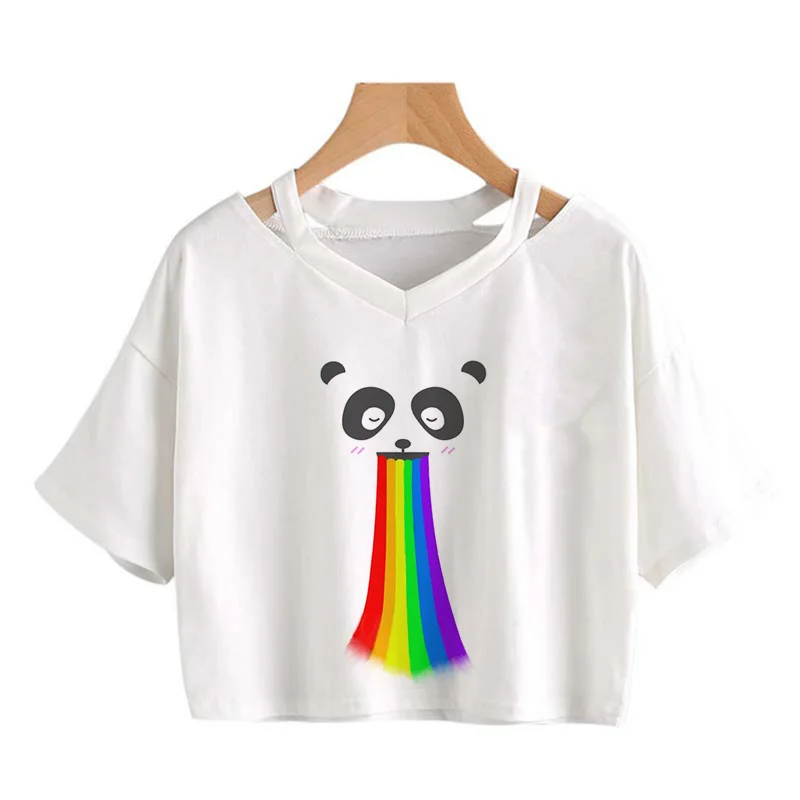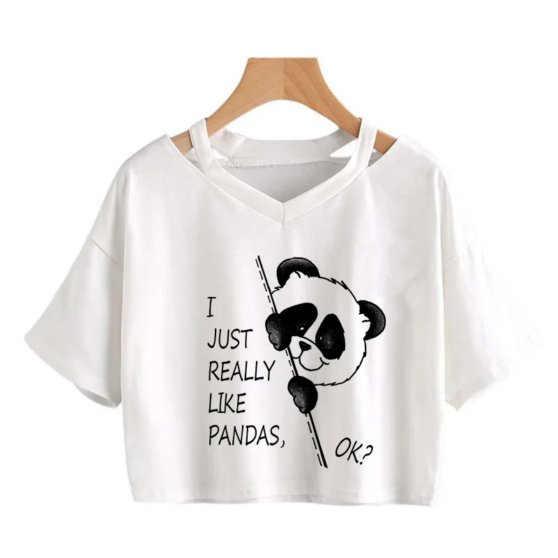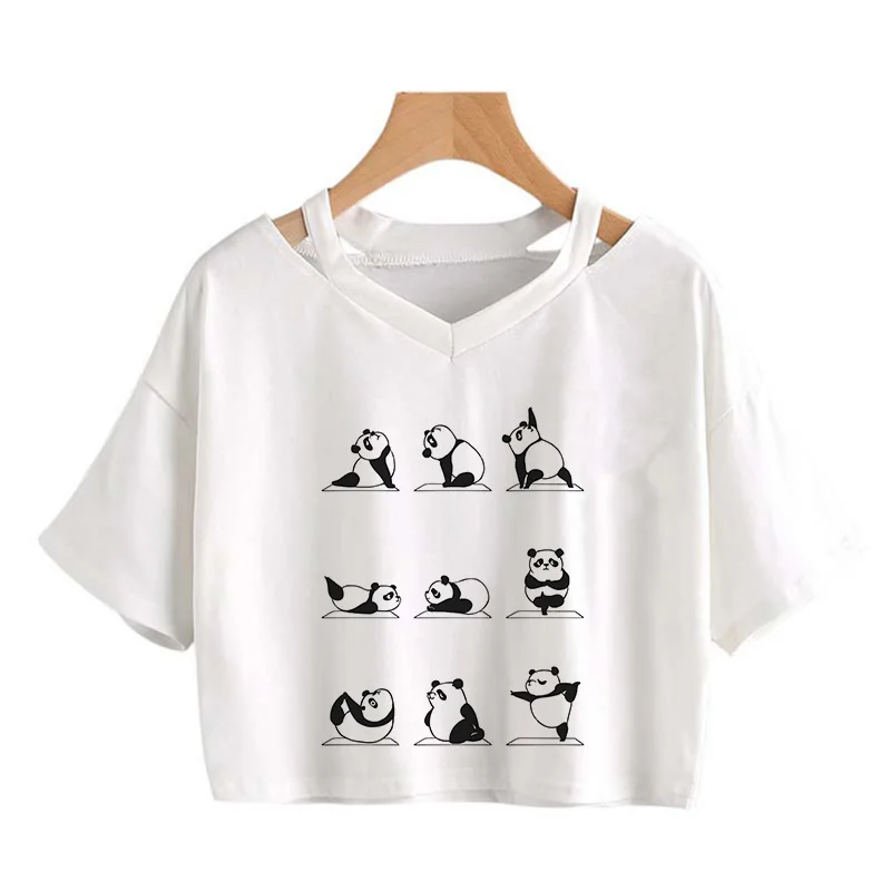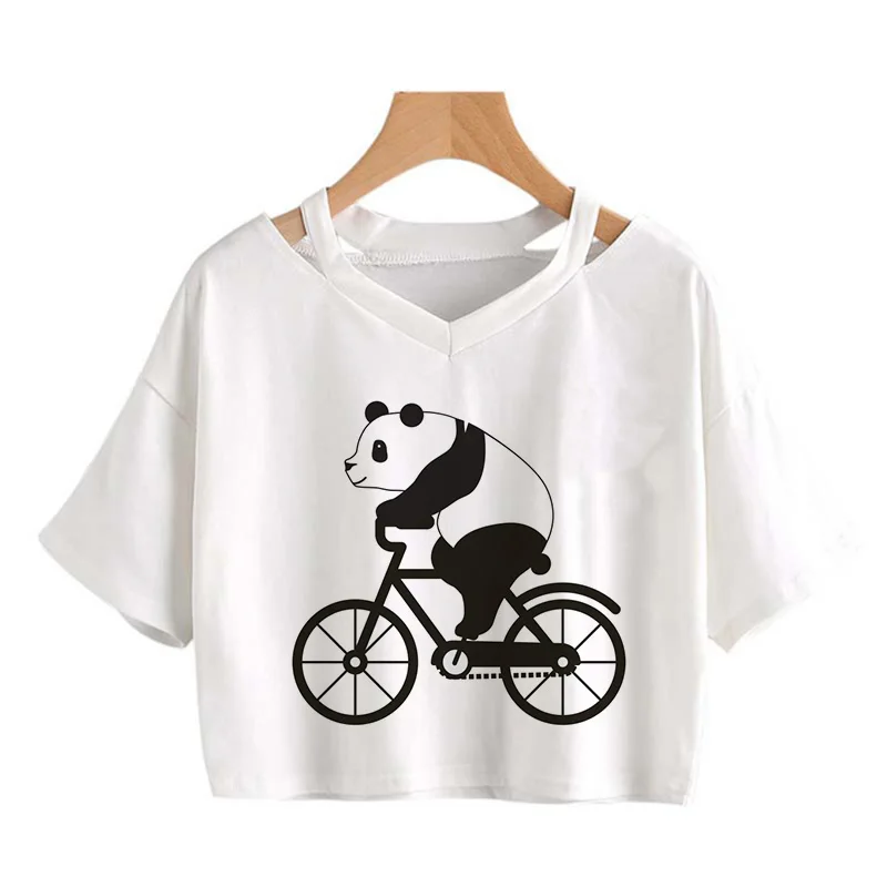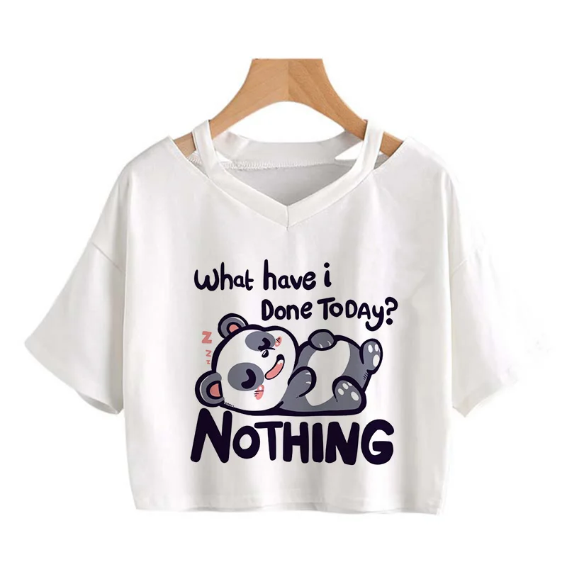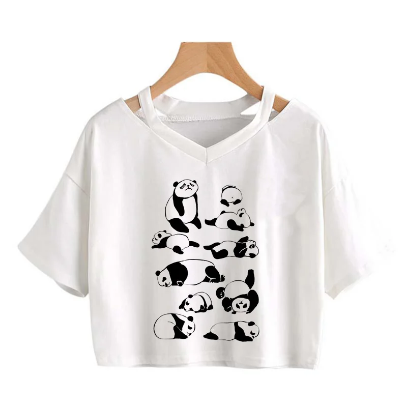 Kawaii Crop Tops for Girls Cute Korean Style T-shirt Women Panda Milk Tea Graphic T Shirt Cartoon Haruku Y2k Tee Tshirt Female