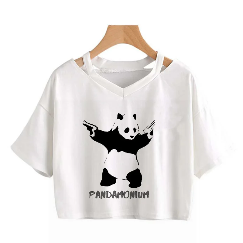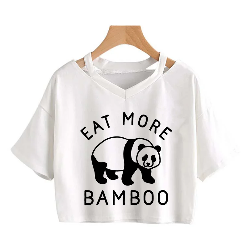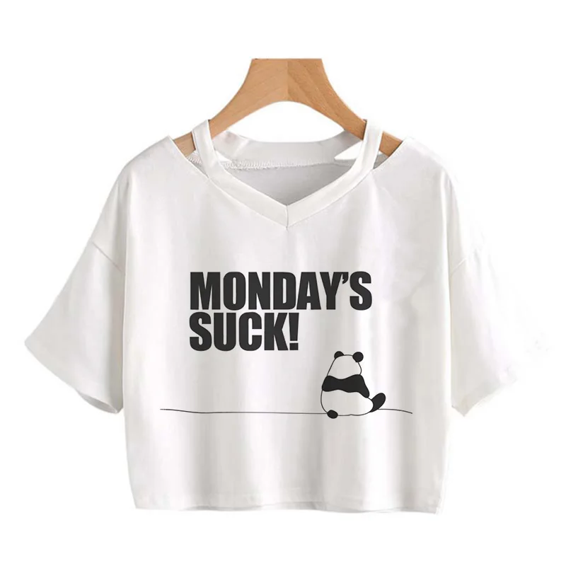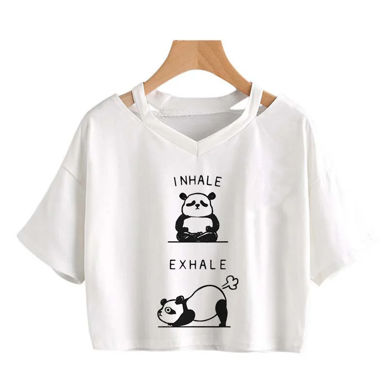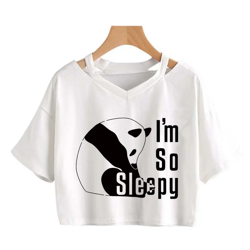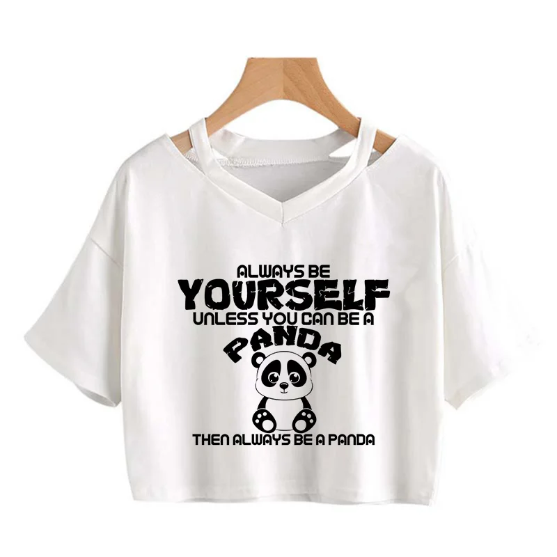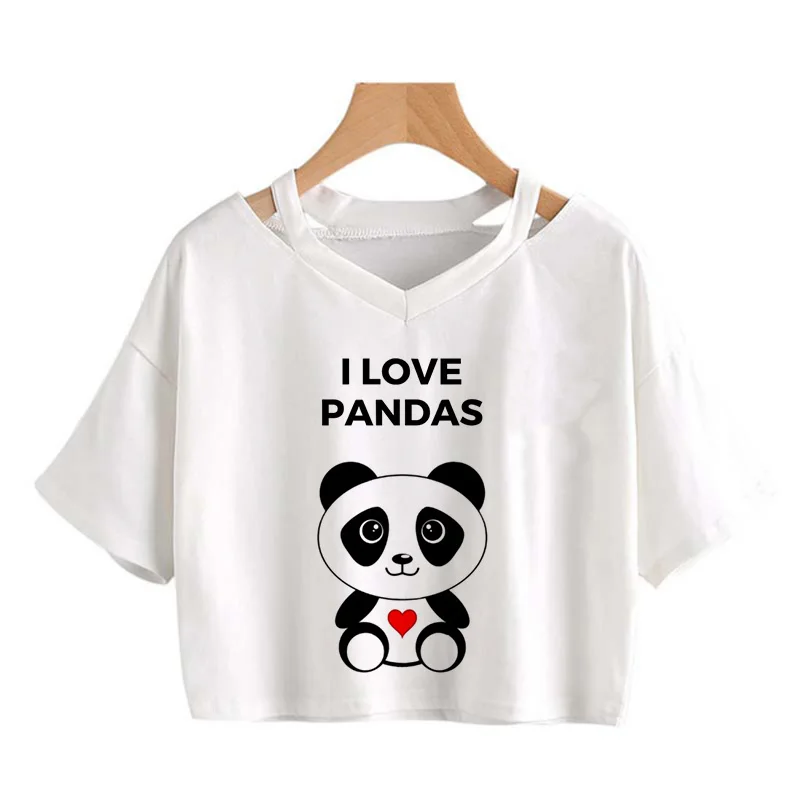 Kawaii Crop Tops for Girls Cute Korean Style T-shirt Women Panda Milk Tea Graphic T Shirt Cartoon Haruku Y2k Tee Tshirt Female
