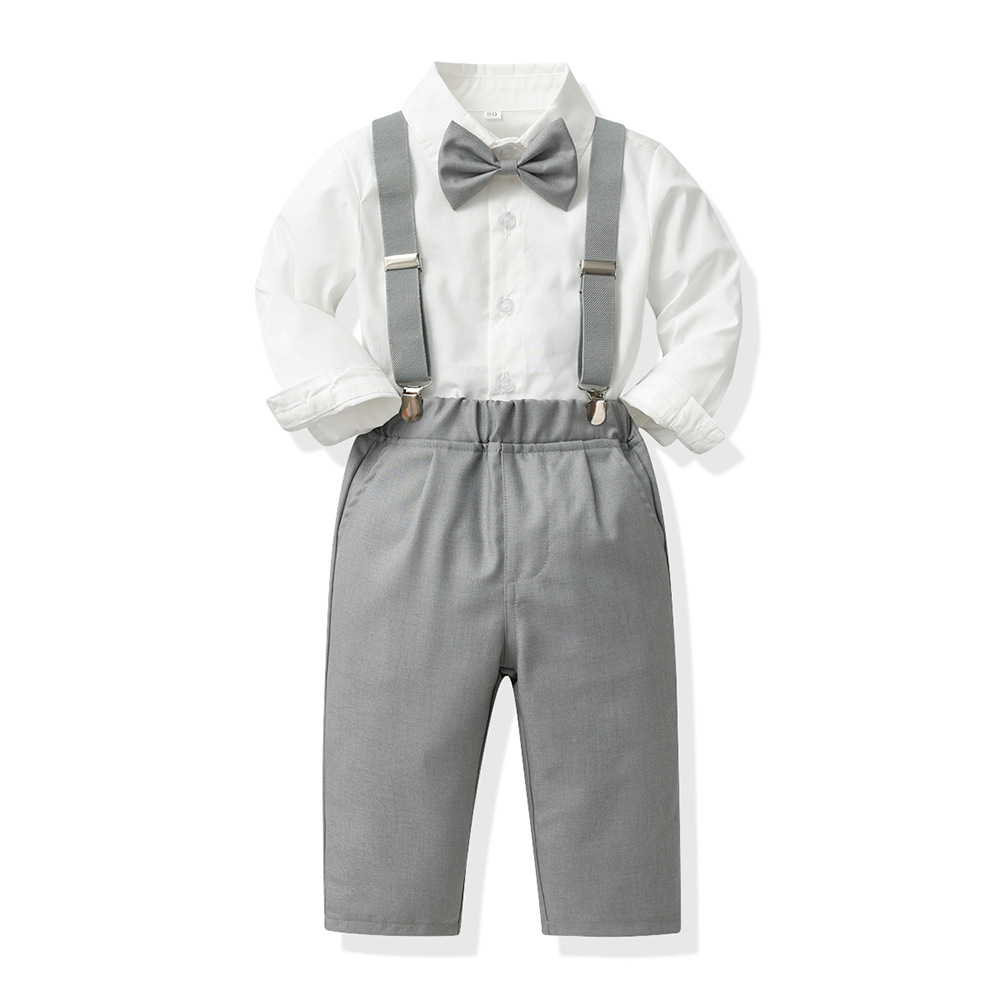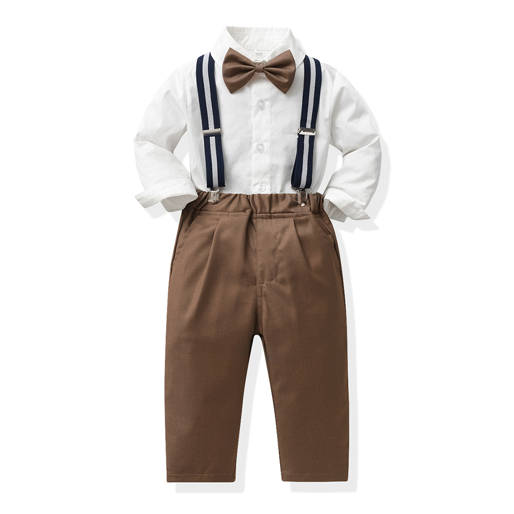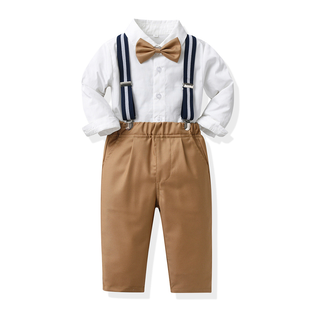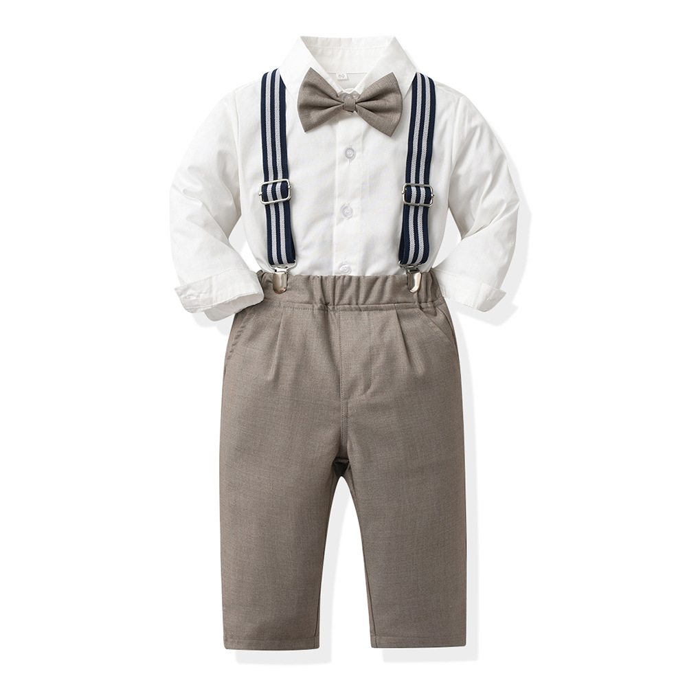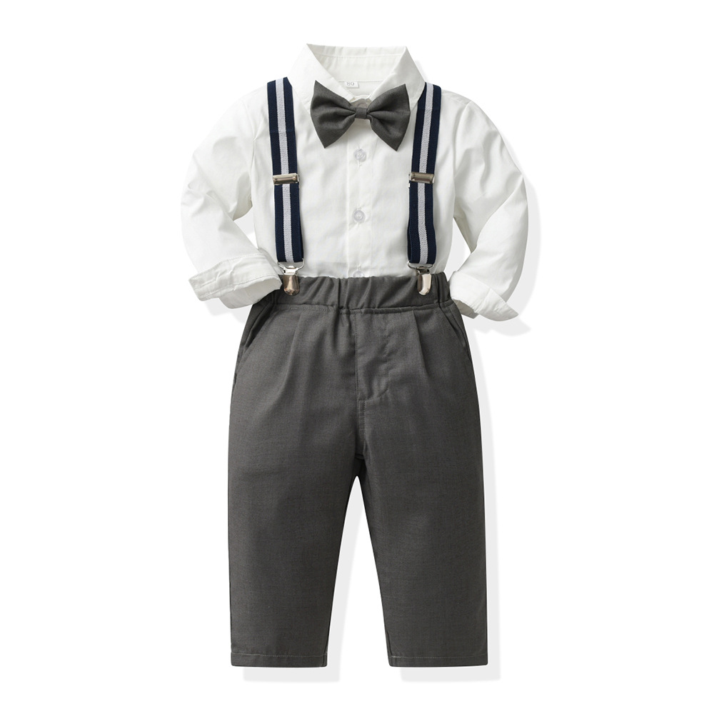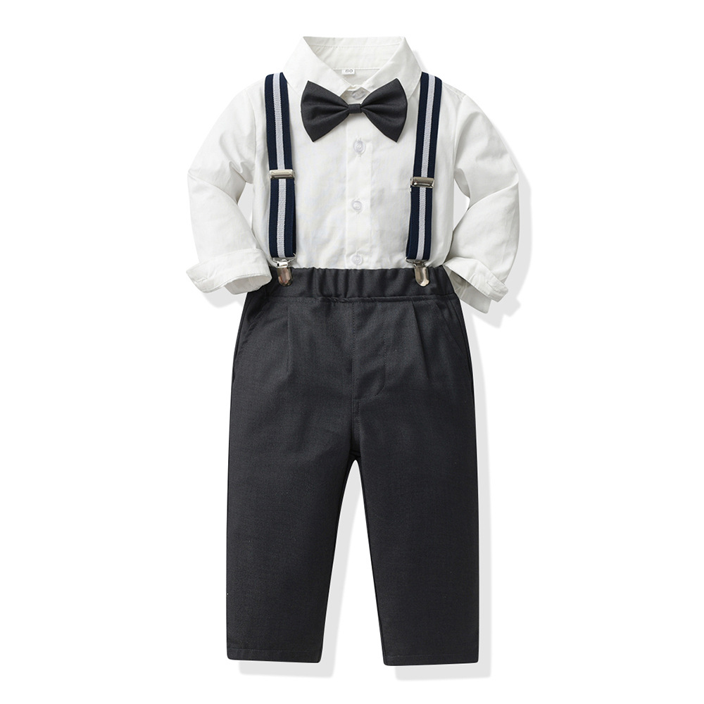 kid's clothing Boys' dress long sleeve bow cotton shirt children's suit suspenders multi-piece set