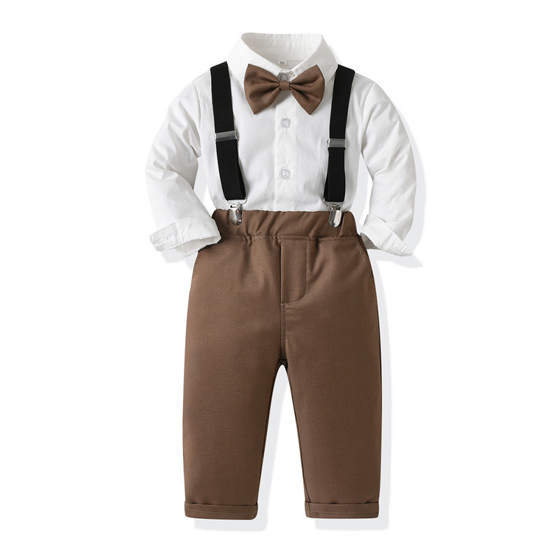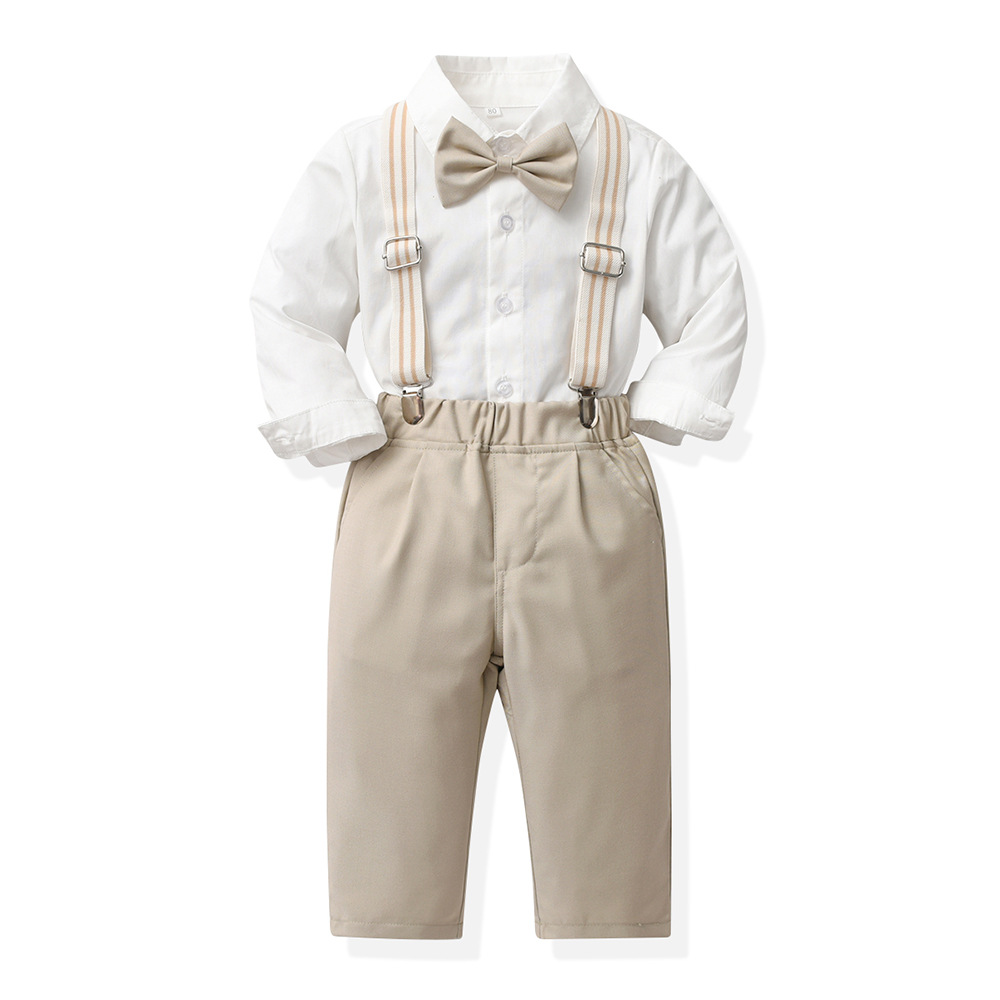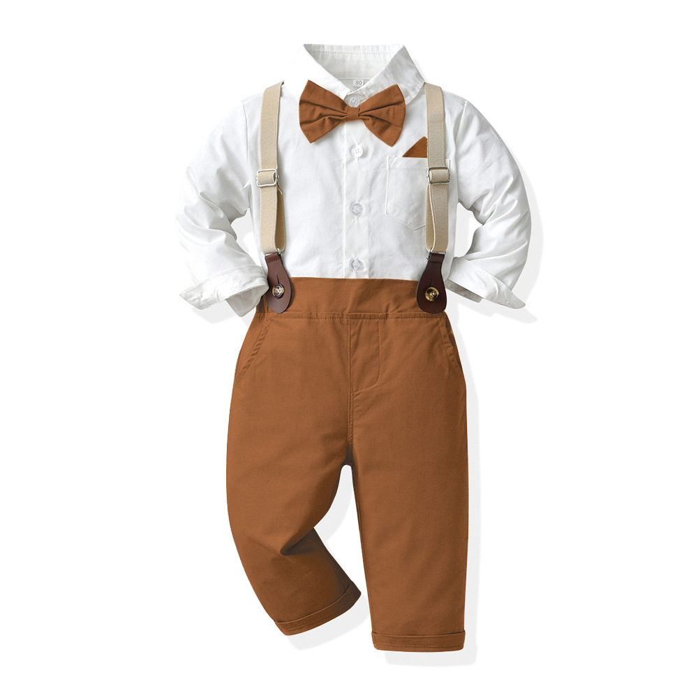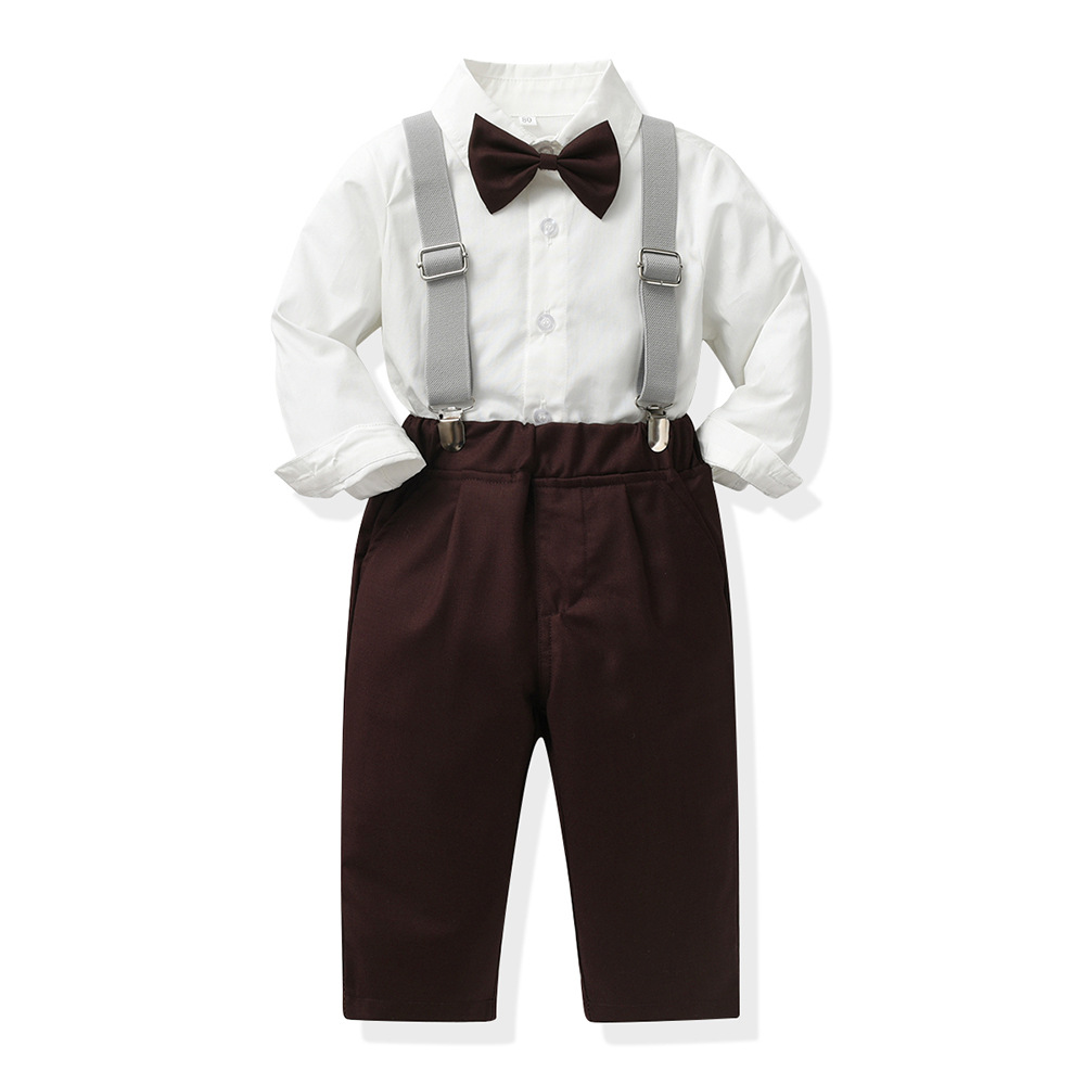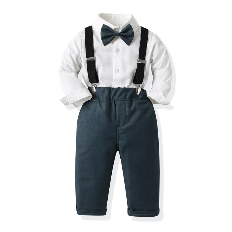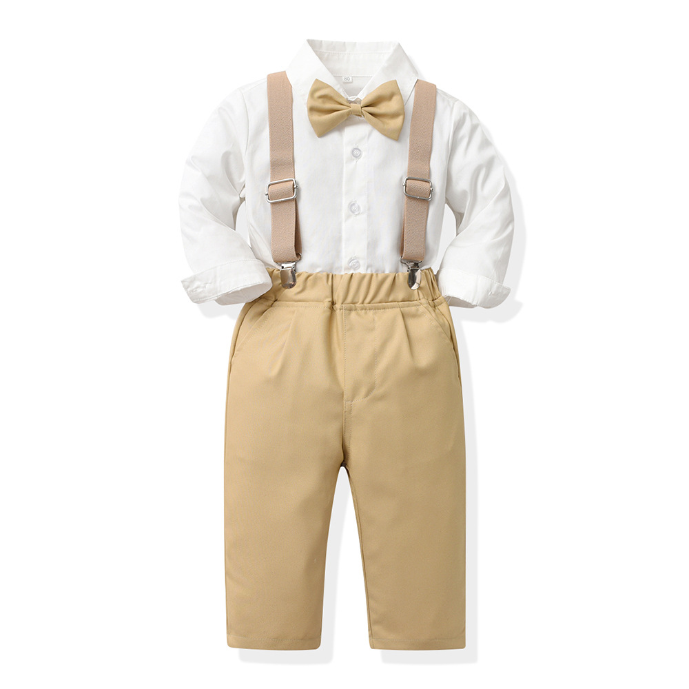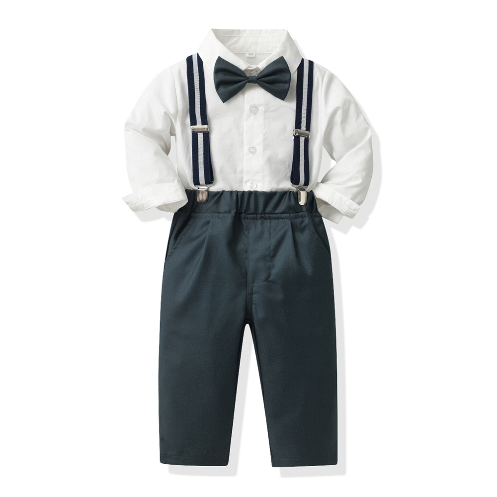 kid's clothing Boys' dress long sleeve bow cotton shirt children's suit suspenders multi-piece set
