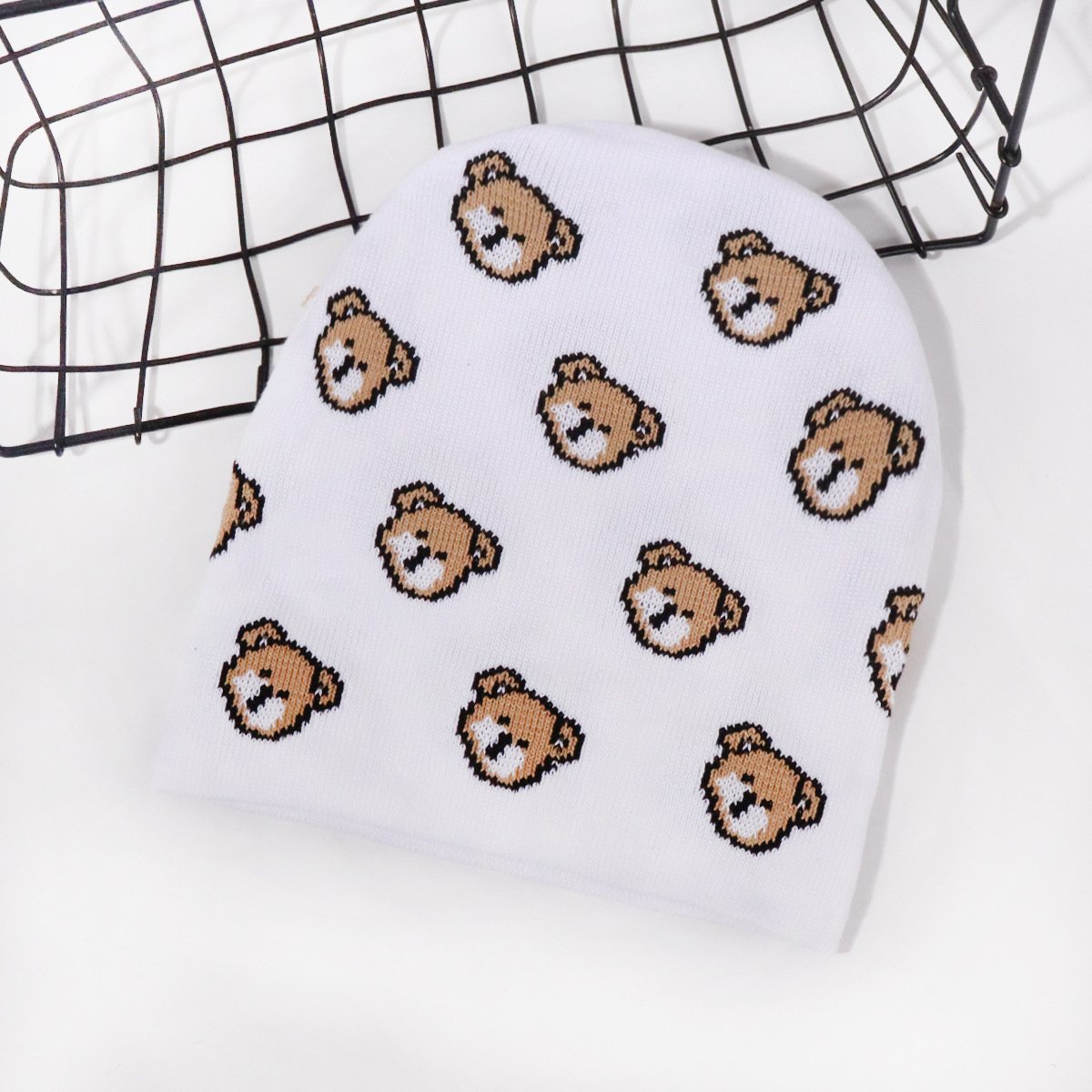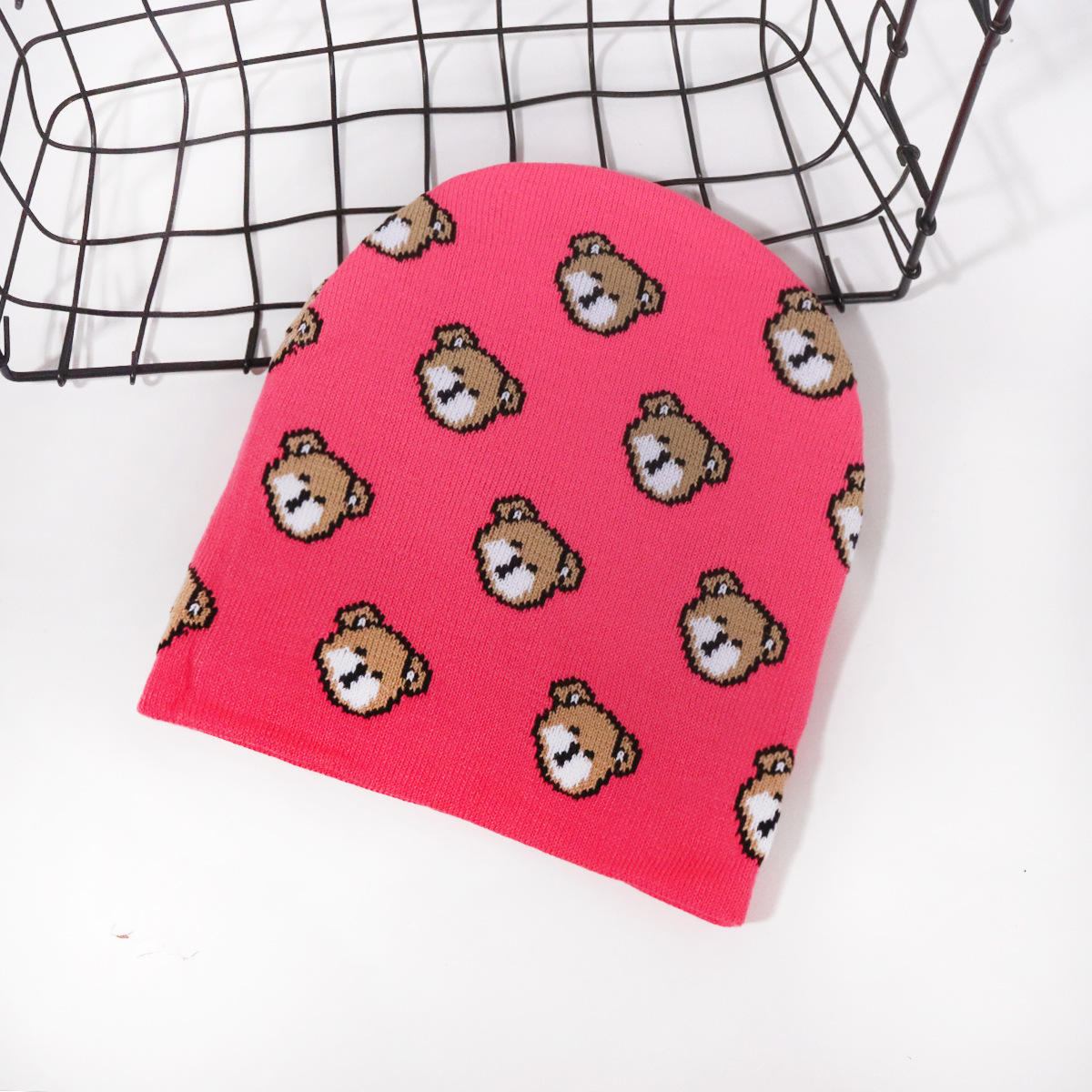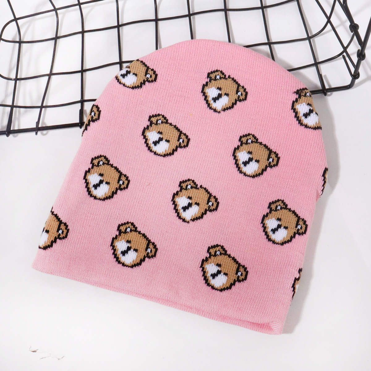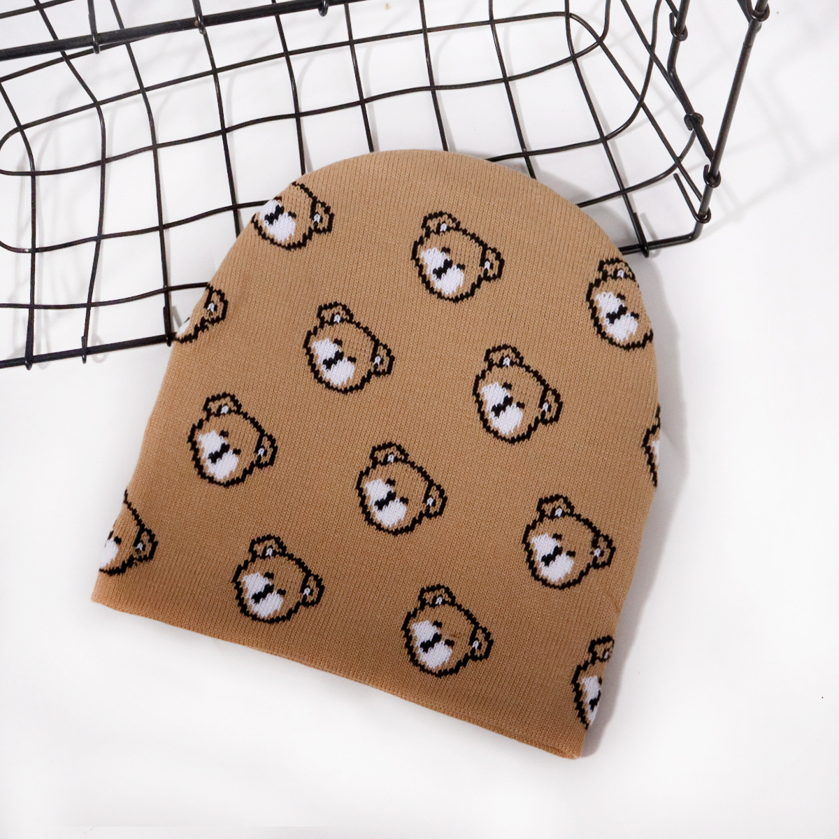 Sweet and cute bear pattern knitted hat men and women outdoor riding warm