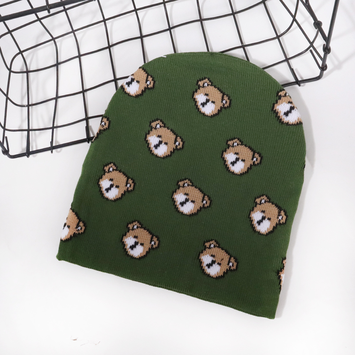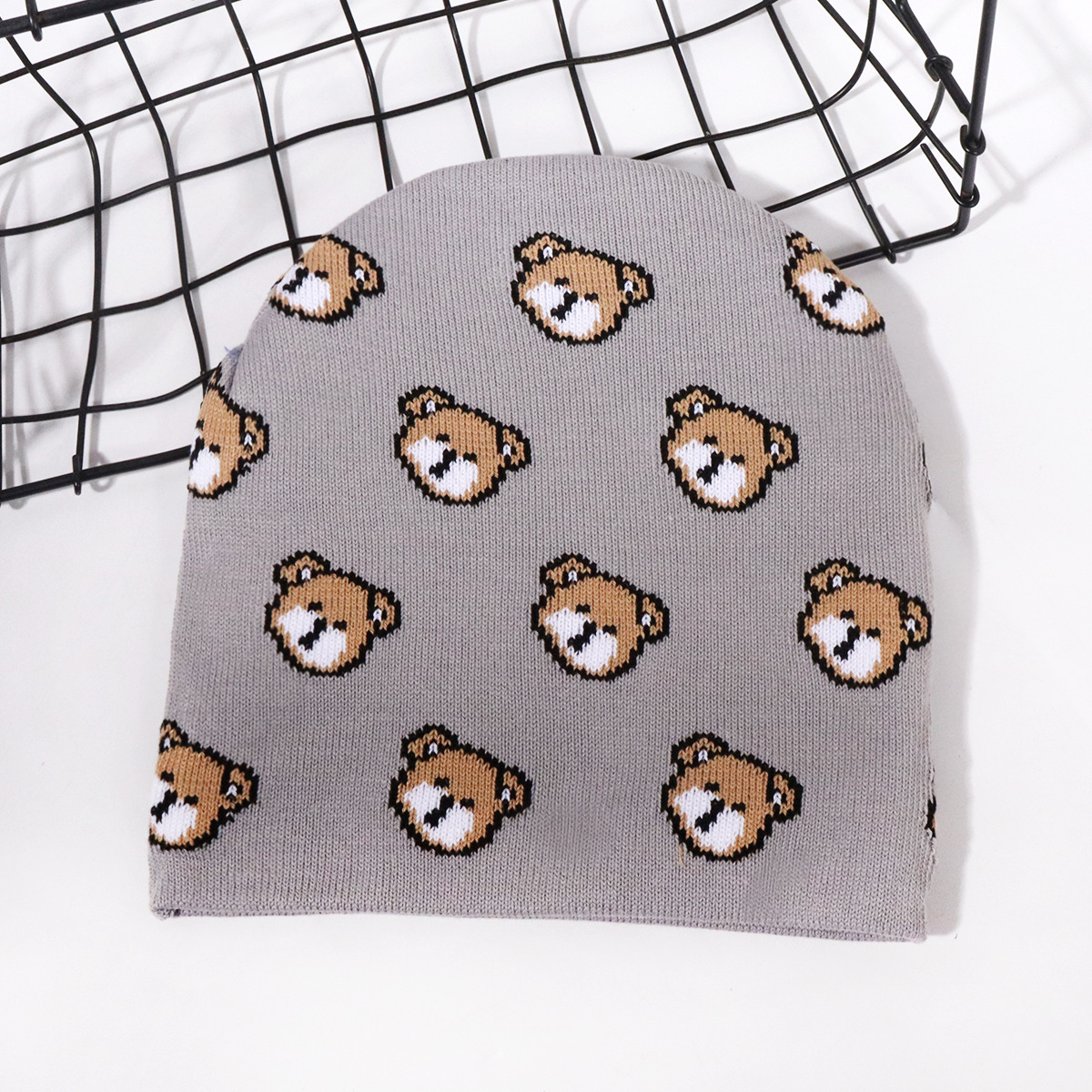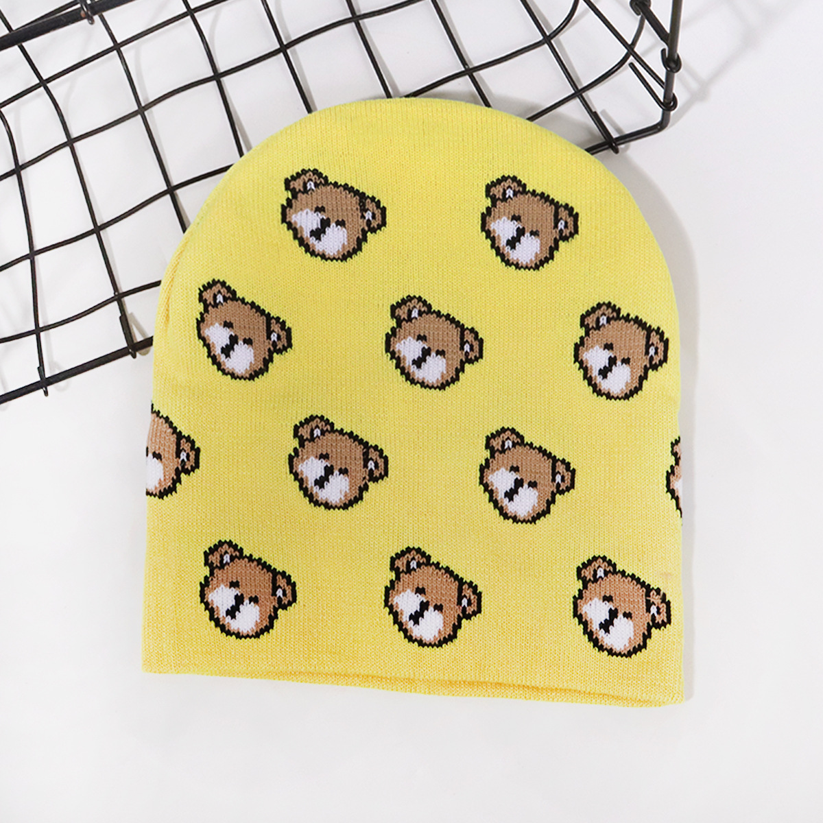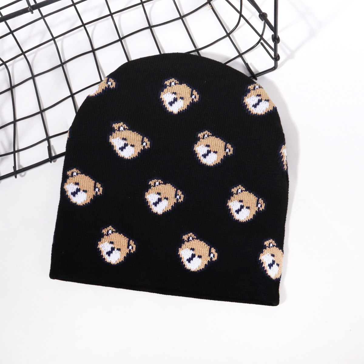 Sweet and cute bear pattern knitted hat men and women outdoor riding warm