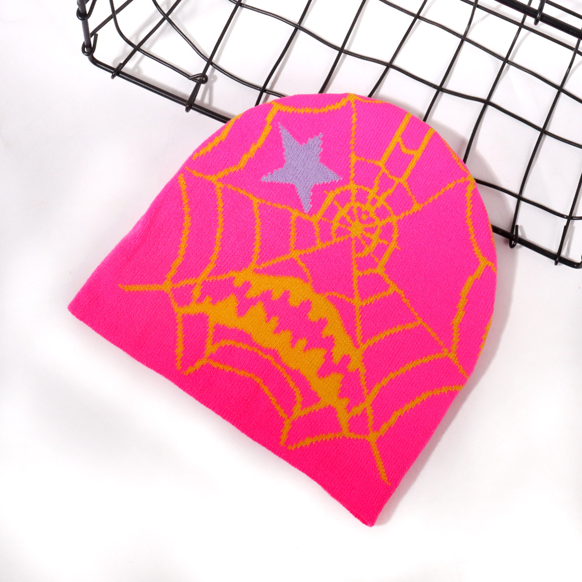Unisex Halloween spiderweb pattern knitted hat personality fashion trend for men and women