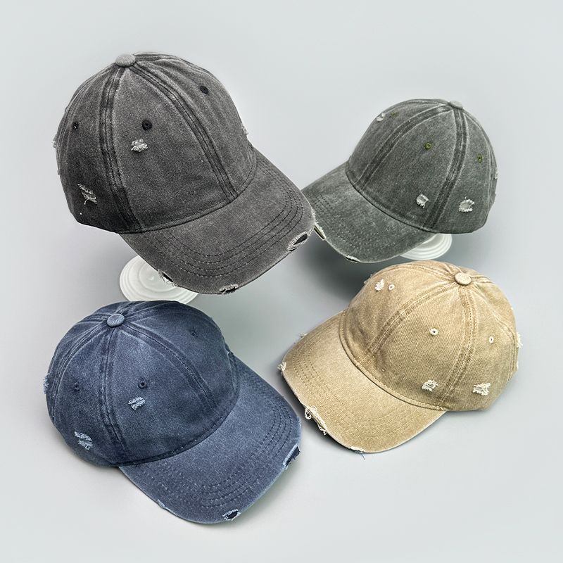 Korean version solid color hole washed soft top outdoor baseball versatile men's and women's duckbill cap, new casual