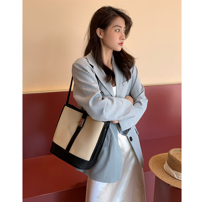 Large capacity for women in 2024, new niche, light luxury, high-end feel, cowhide bucket large genuine leather women's