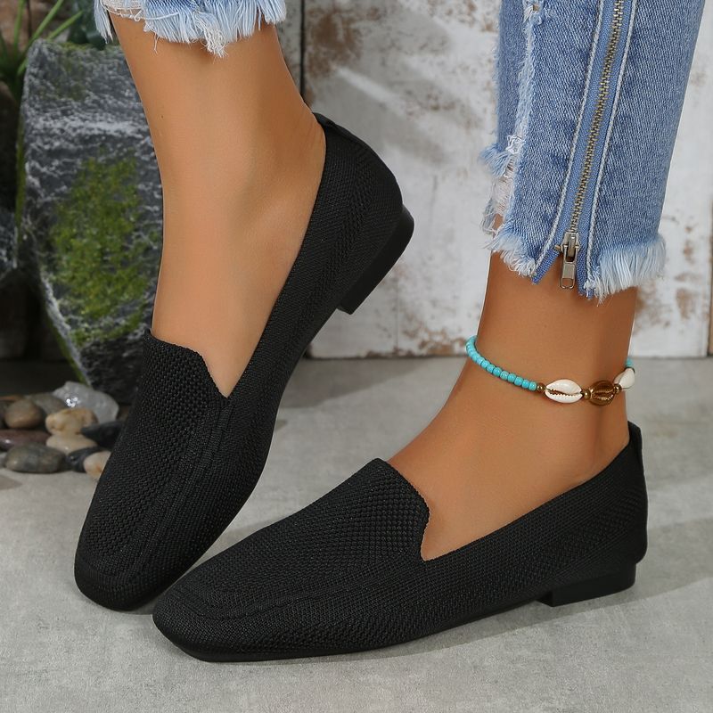 Large Casual For Women In Spring And Summer, New Single Shoes, Square Toe Flat Bottom Fly Woven Lazy Shoes