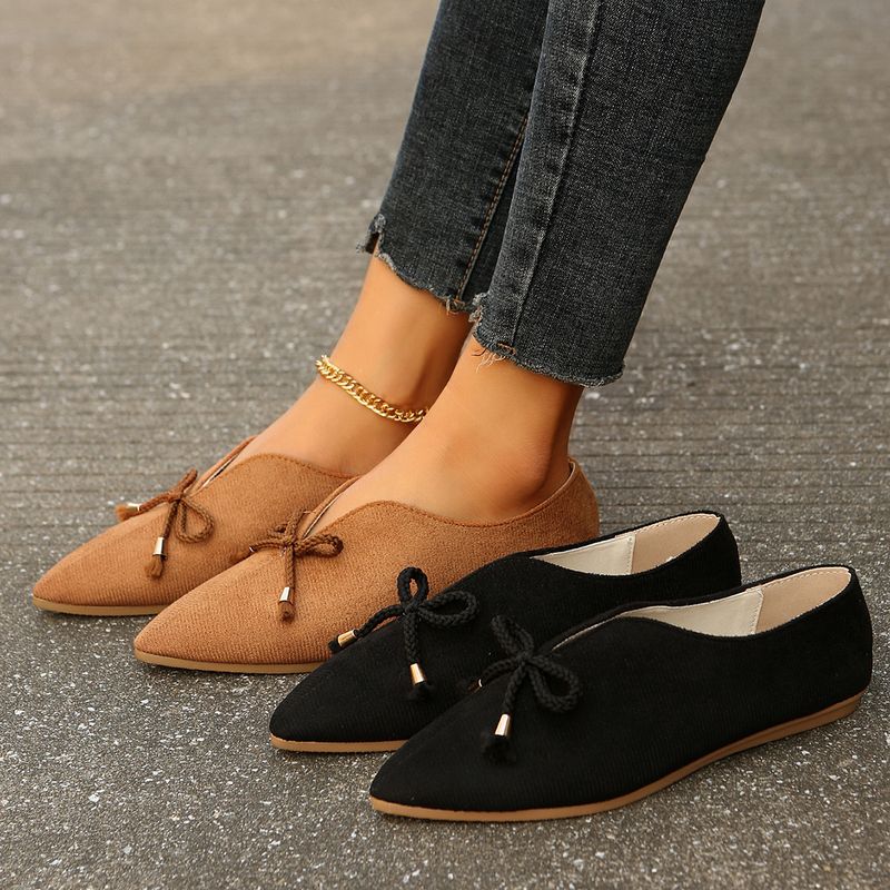 Large Size Fashionable Pointed Bow Decoration Flat Sole Single Shoe Comfortable And Versatile Bean Girl